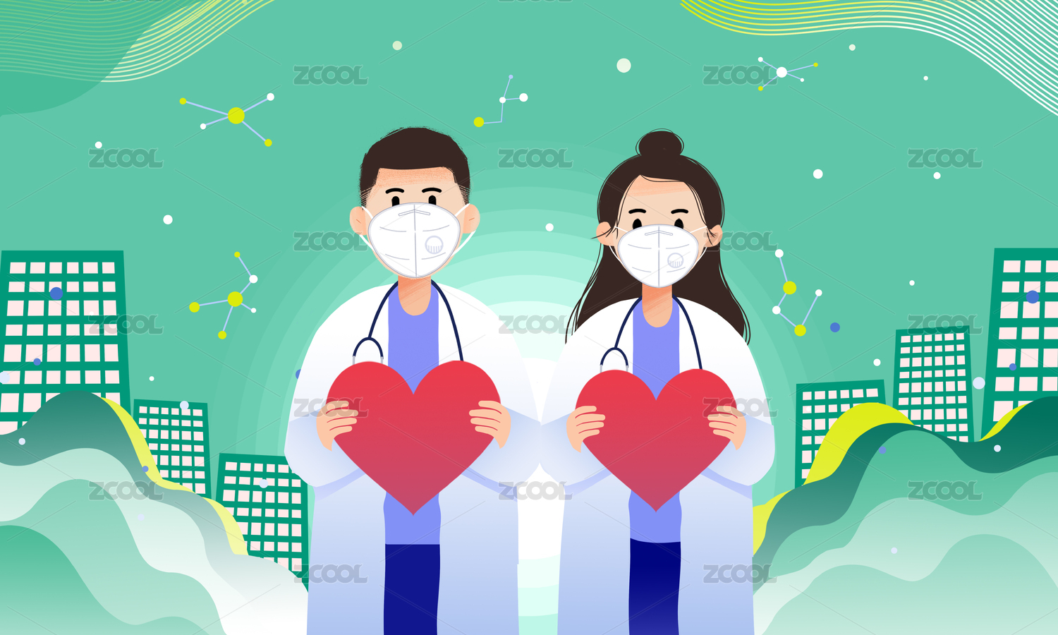 健康醫(yī)療醫(yī)生卡通插畫