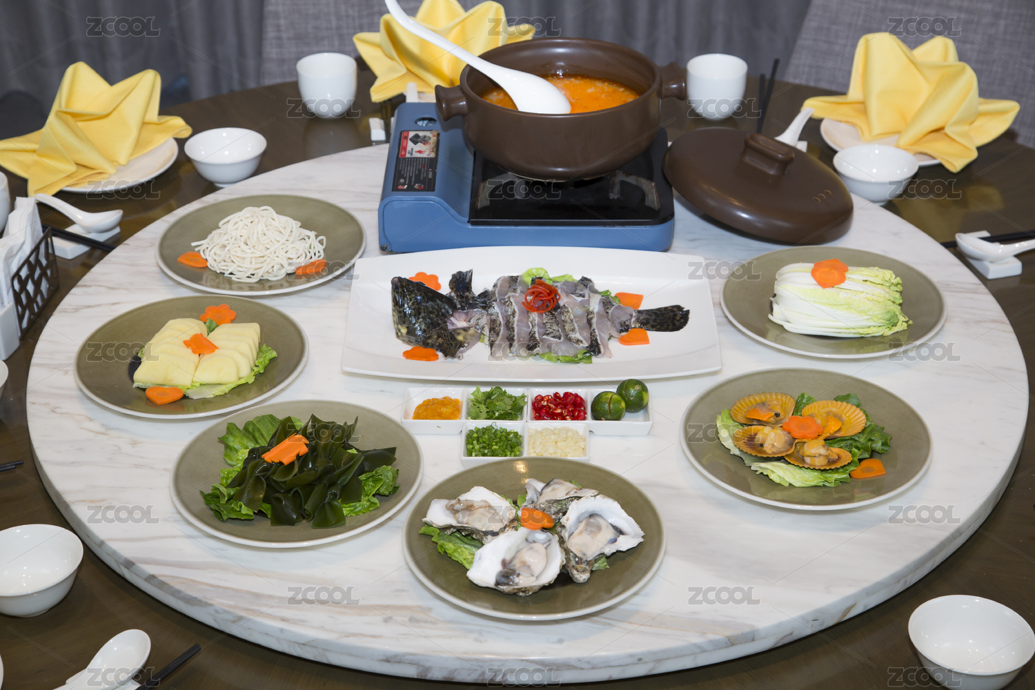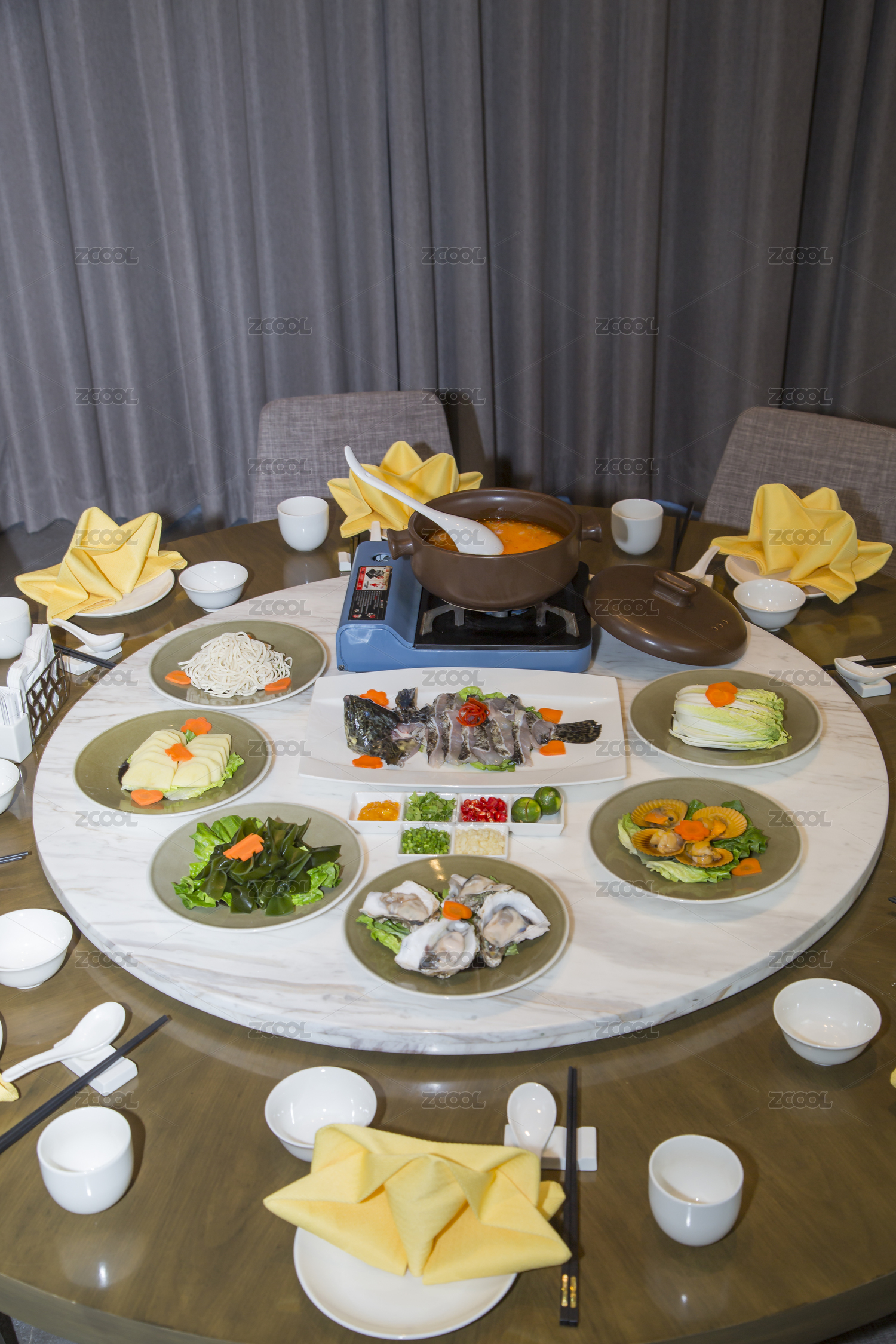 圓桌火鍋配菜中式餐飲布置