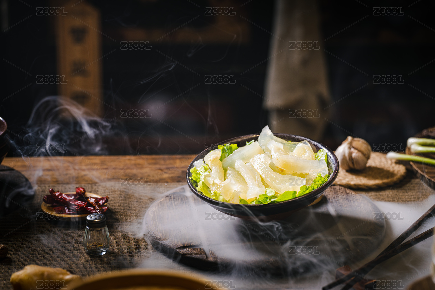 復(fù)古中式背景火鍋食材牛蹄筋