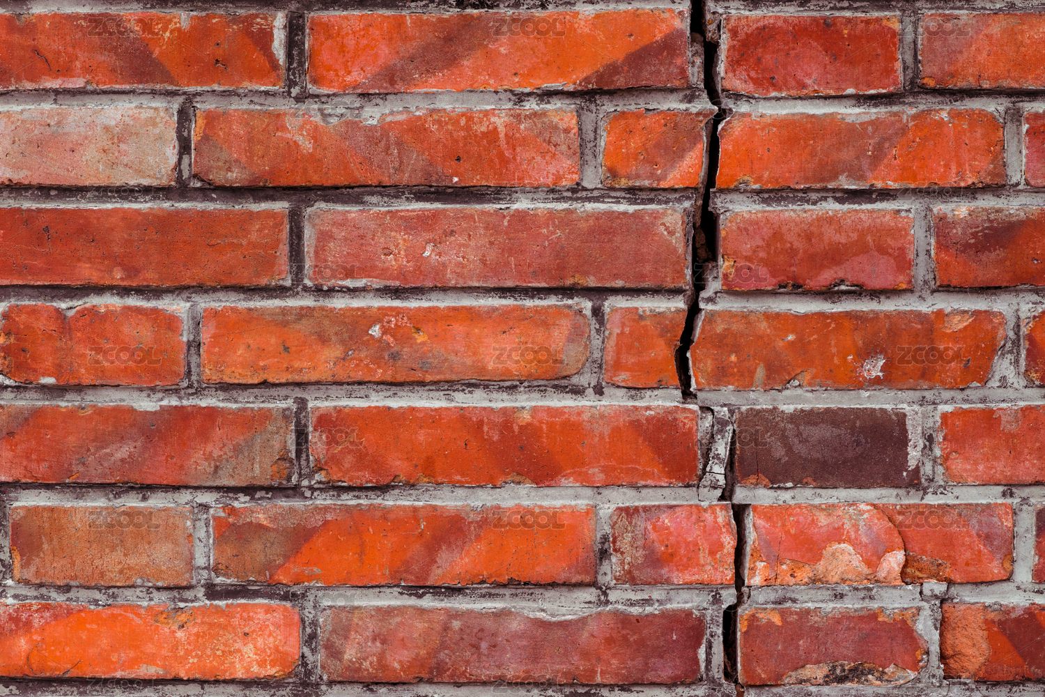 帶有不規(guī)則裂縫的紅色磚墻