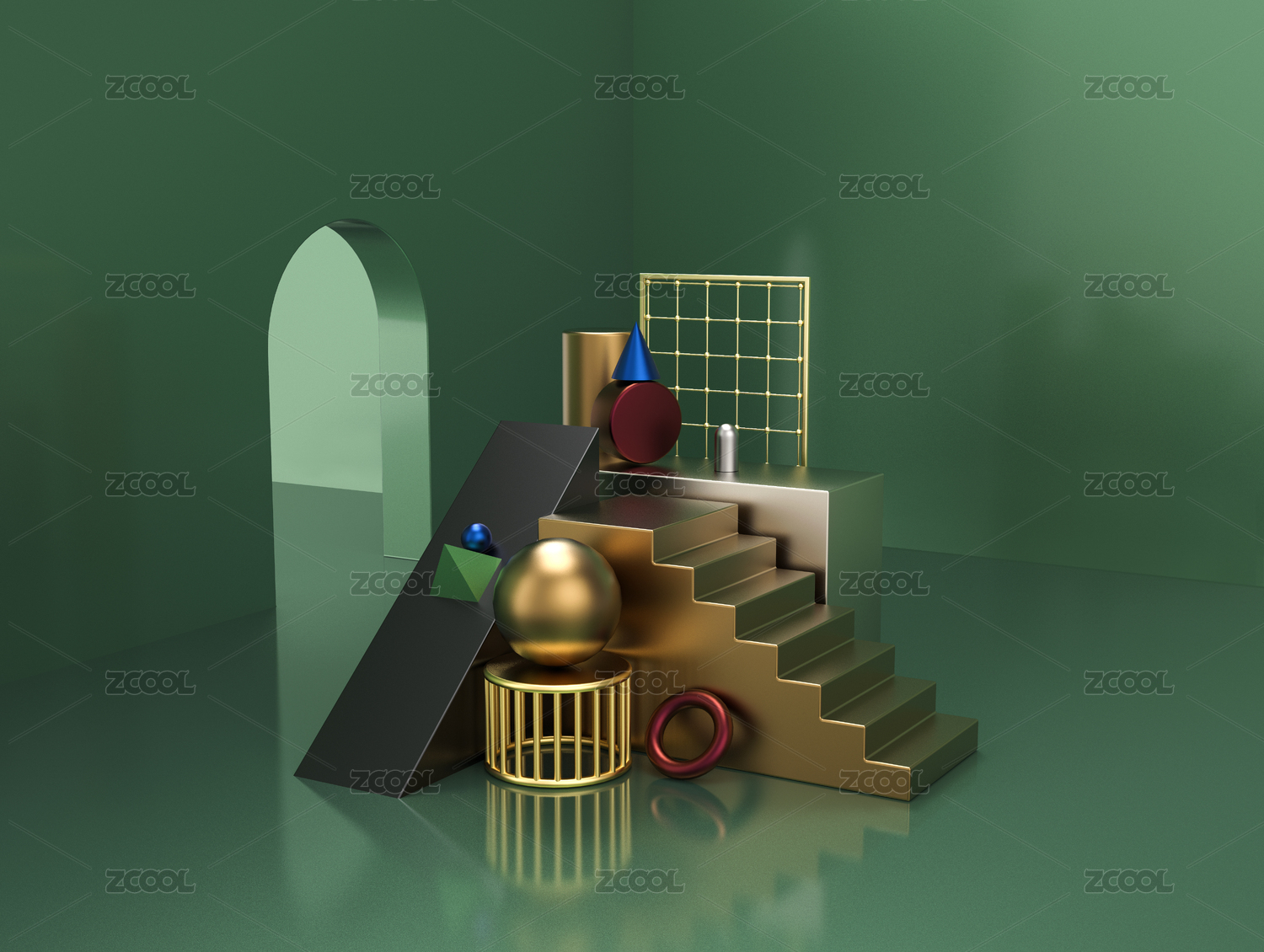 深色系3D立體不規(guī)則圖形擺放,場景搭建