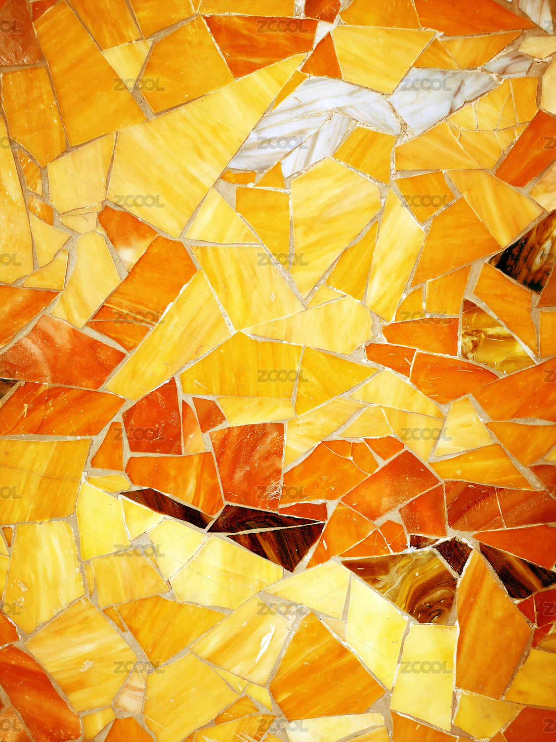 橘黃色不規(guī)則破碎瓷磚拼花墻面素材