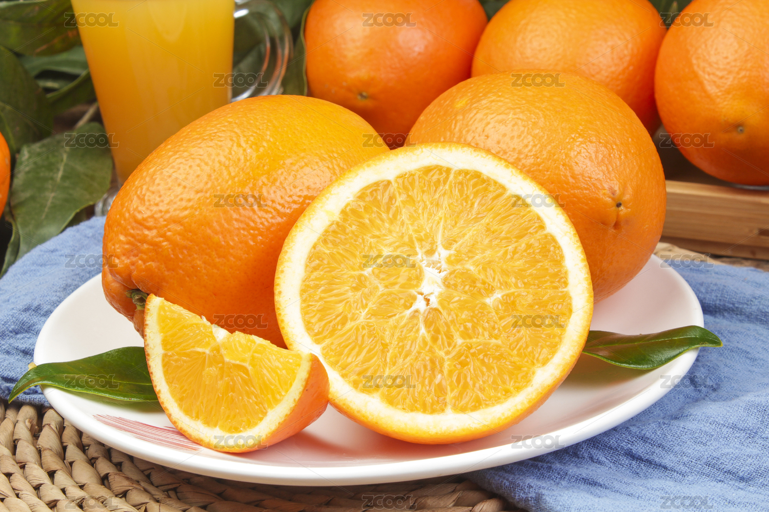 藤編上放著一盤紐荷爾臍橙和臍橙果肉