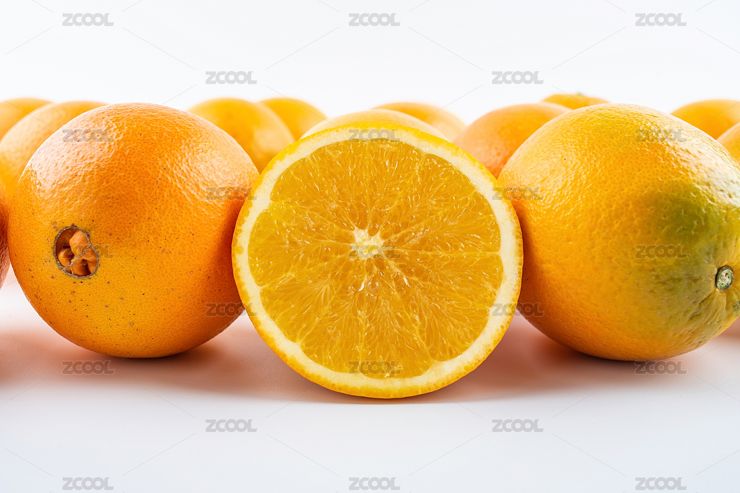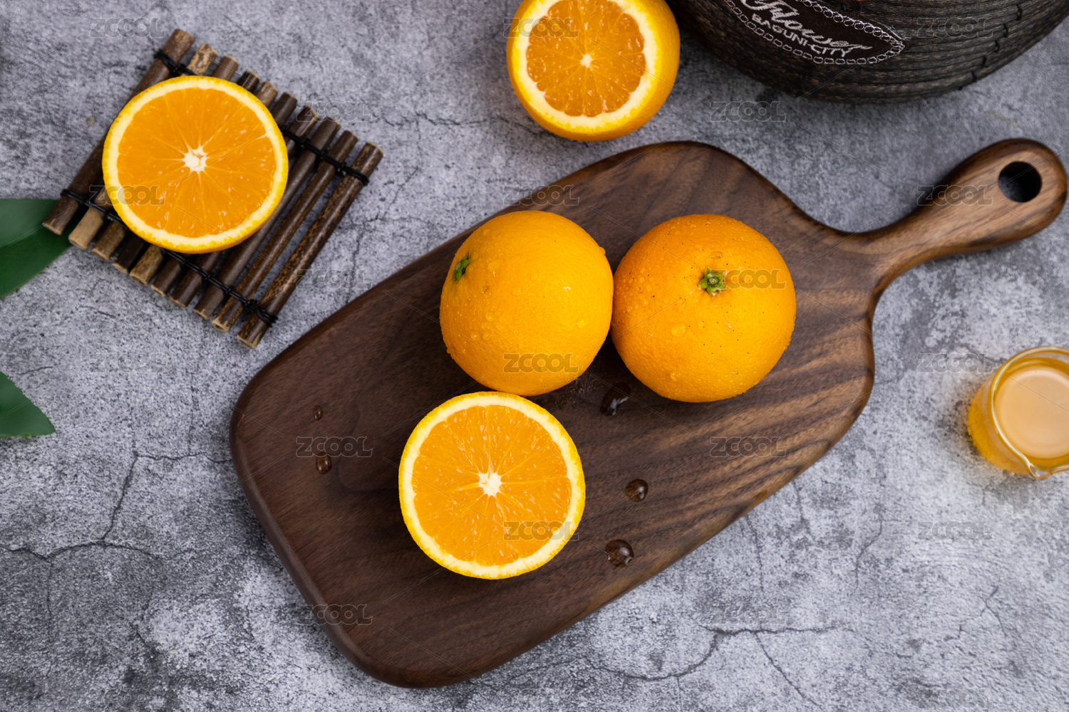 黃色木墊子上放著一堆臍橙和臍橙果肉
