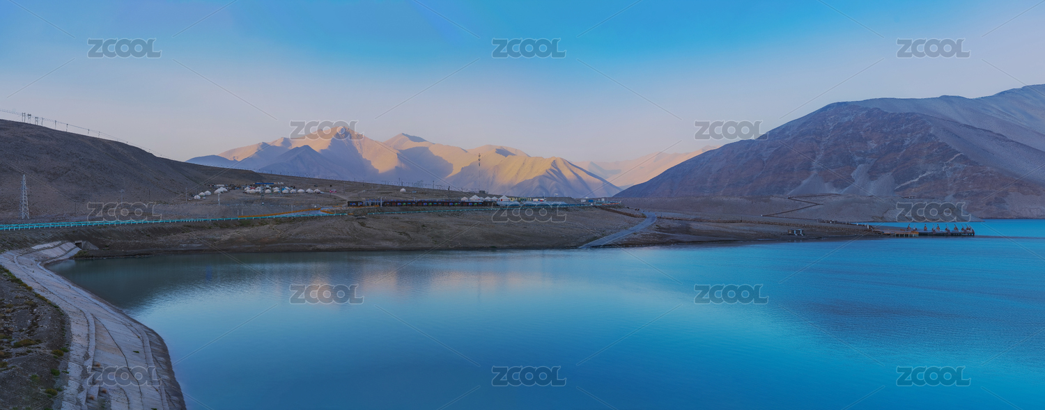 中國新疆的昆侖山的慕士塔格峰和高原湖泊