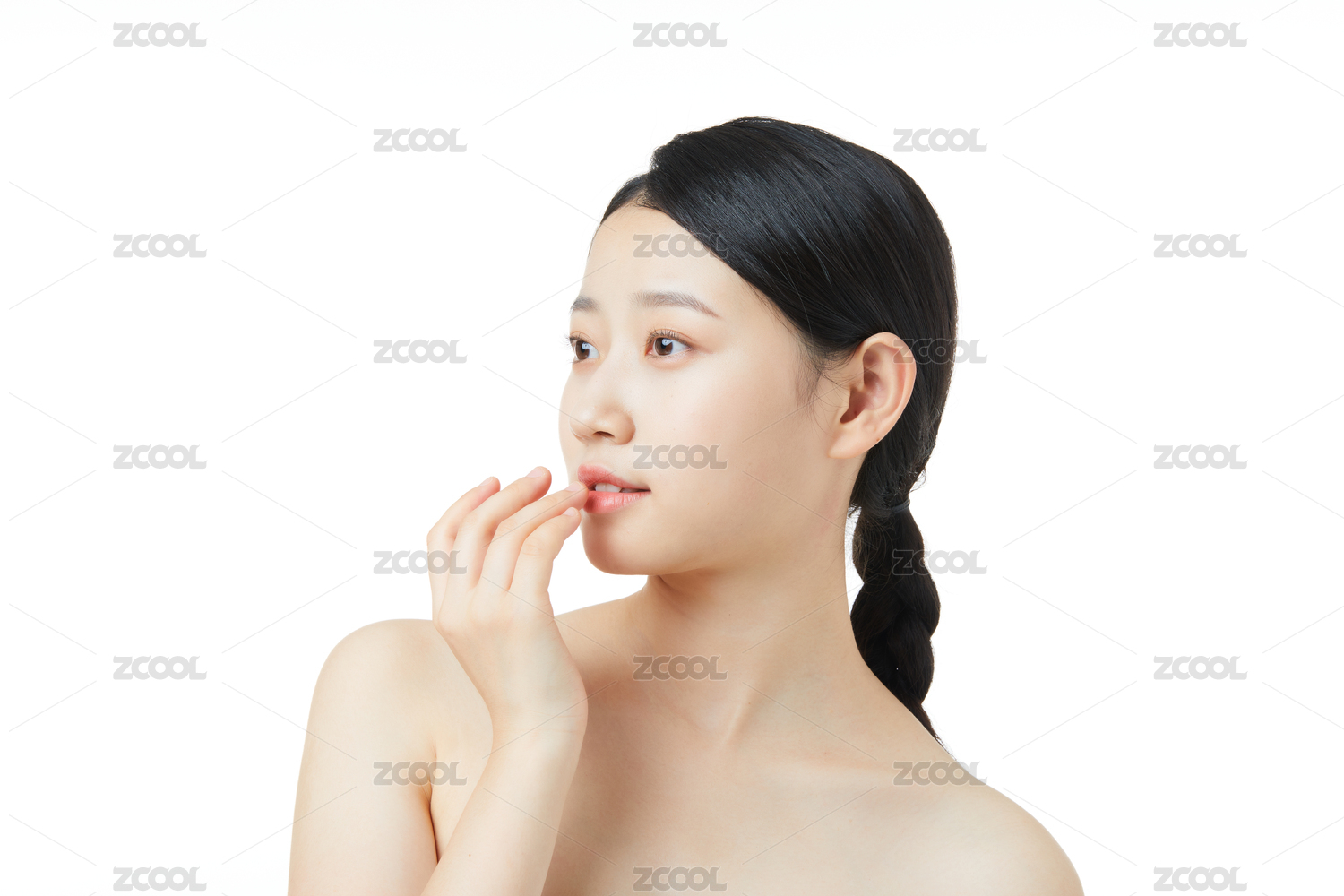 美女手指觸碰嘴唇