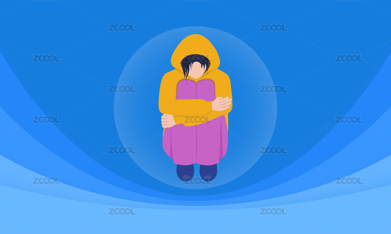 一個(gè)孤獨(dú)的自閉癥小孩的扁平簡(jiǎn)約插畫