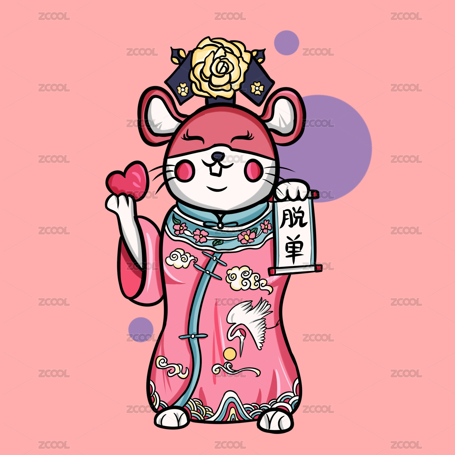 原創(chuàng)鼠年紅娘桃花運(yùn)插畫(huà)