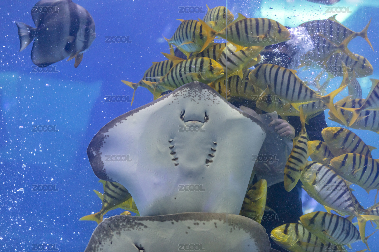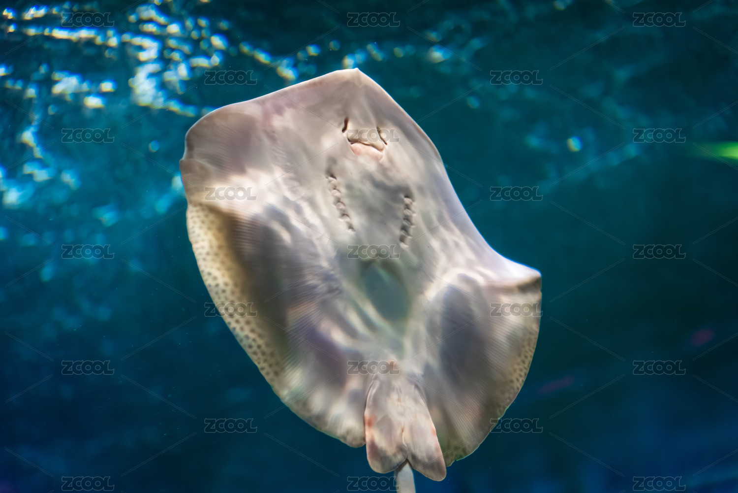 水族館里的鰩魚腹部