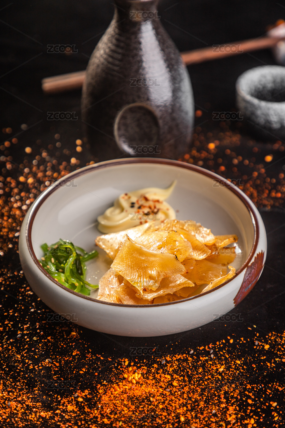 桌上有一盤烤鰩魚魚翅