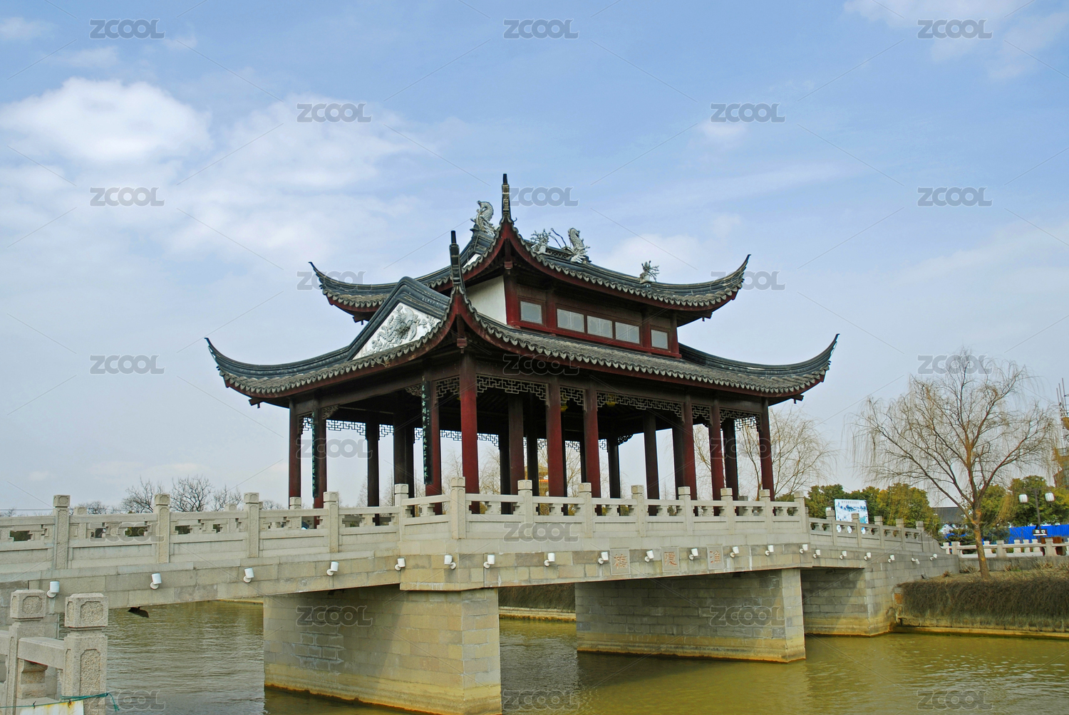 中國(guó)江蘇蘇州市楓橋古鎮(zhèn)古運(yùn)河亭橋 漁隱橋