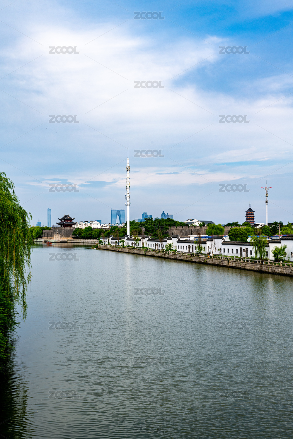 中國(guó)江蘇蘇州火車站京杭古運(yùn)河景觀