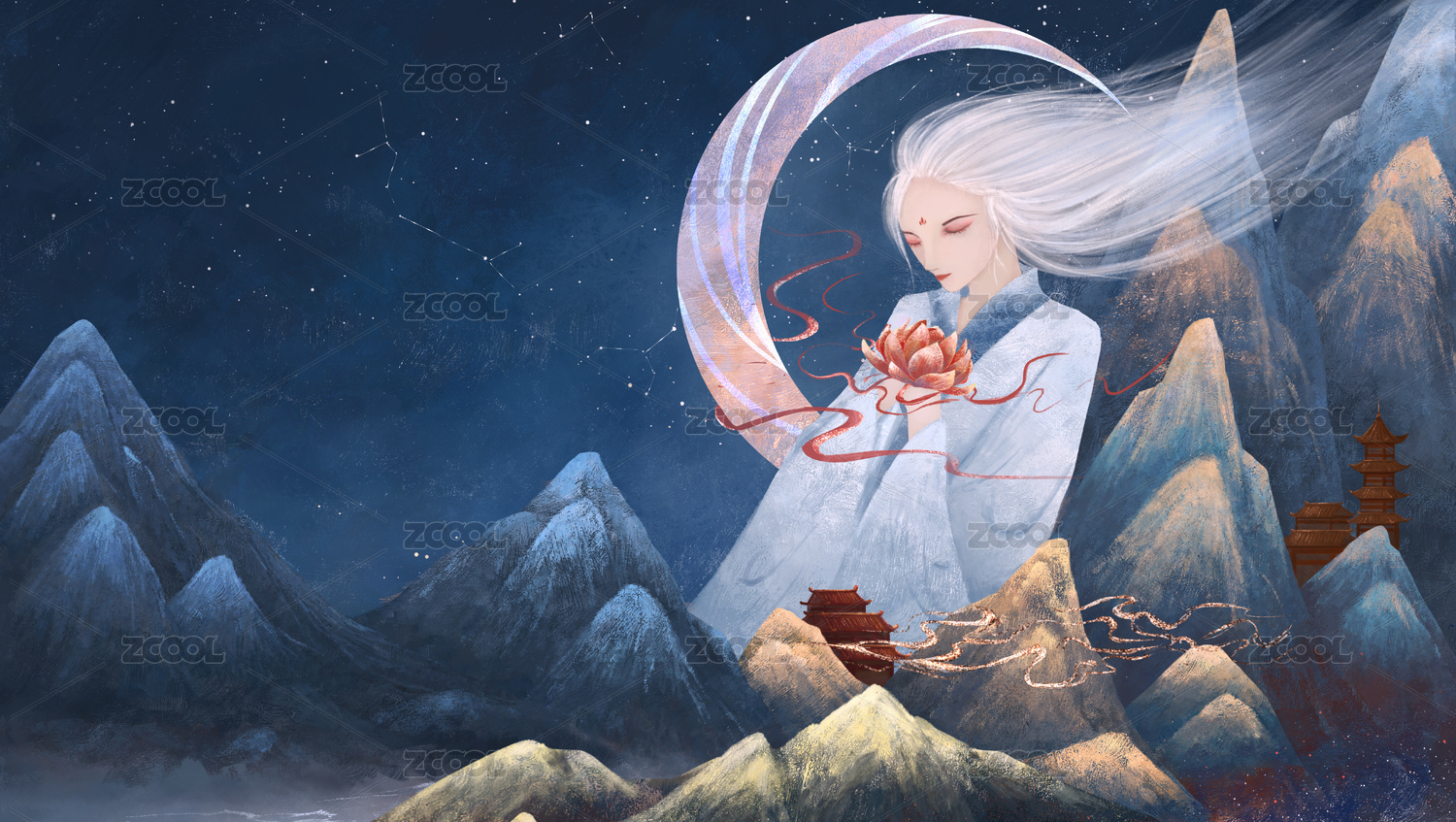 海洋中的白發(fā)水神幻想風(fēng)格
