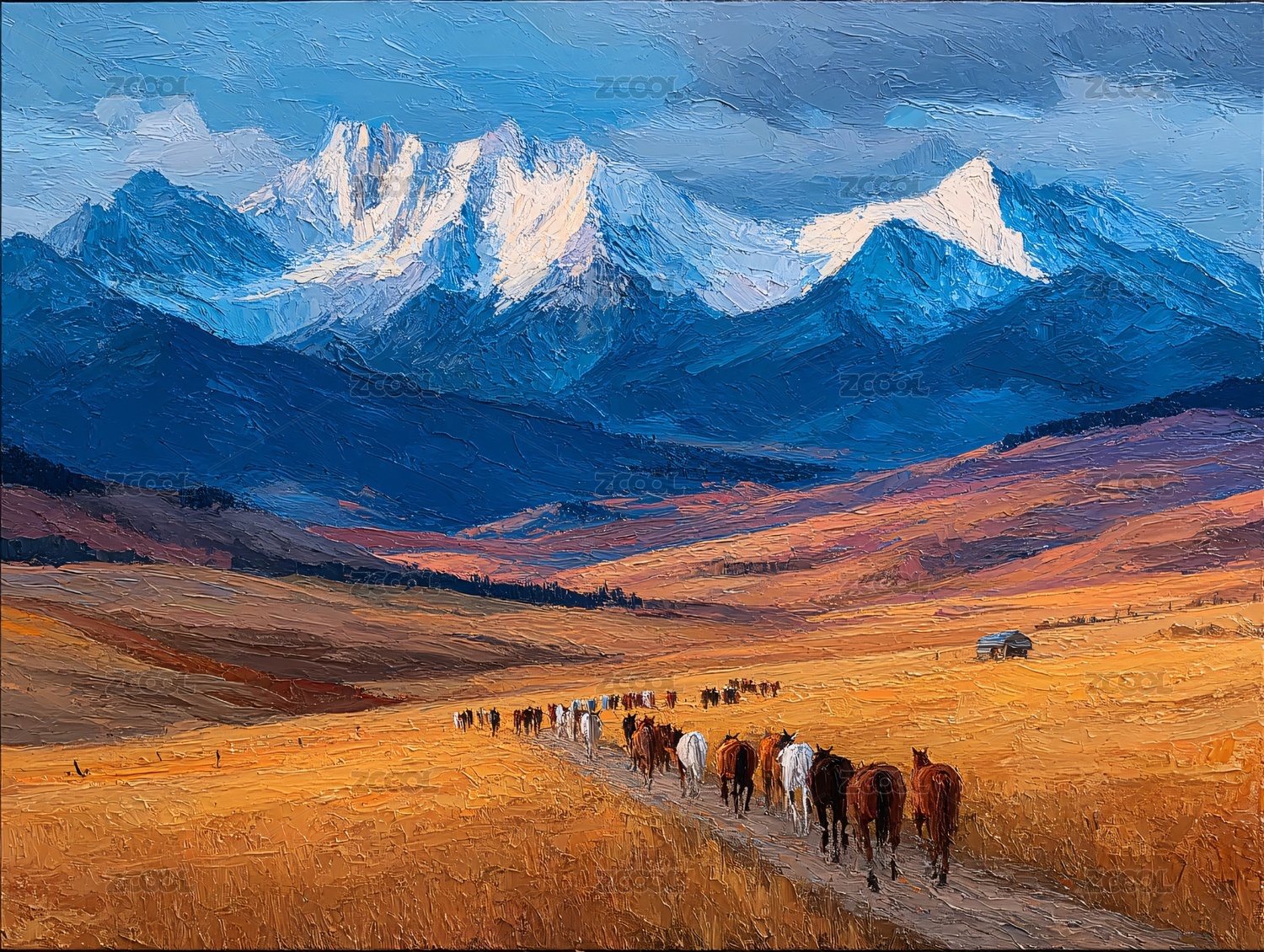 非洲草原風(fēng)景動(dòng)物油畫世界油畫風(fēng)景油畫印象派油畫
