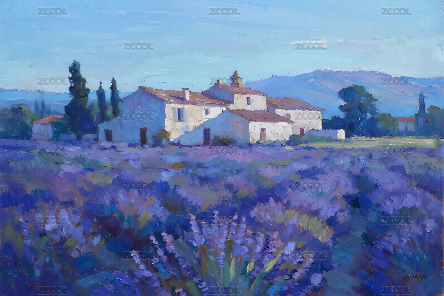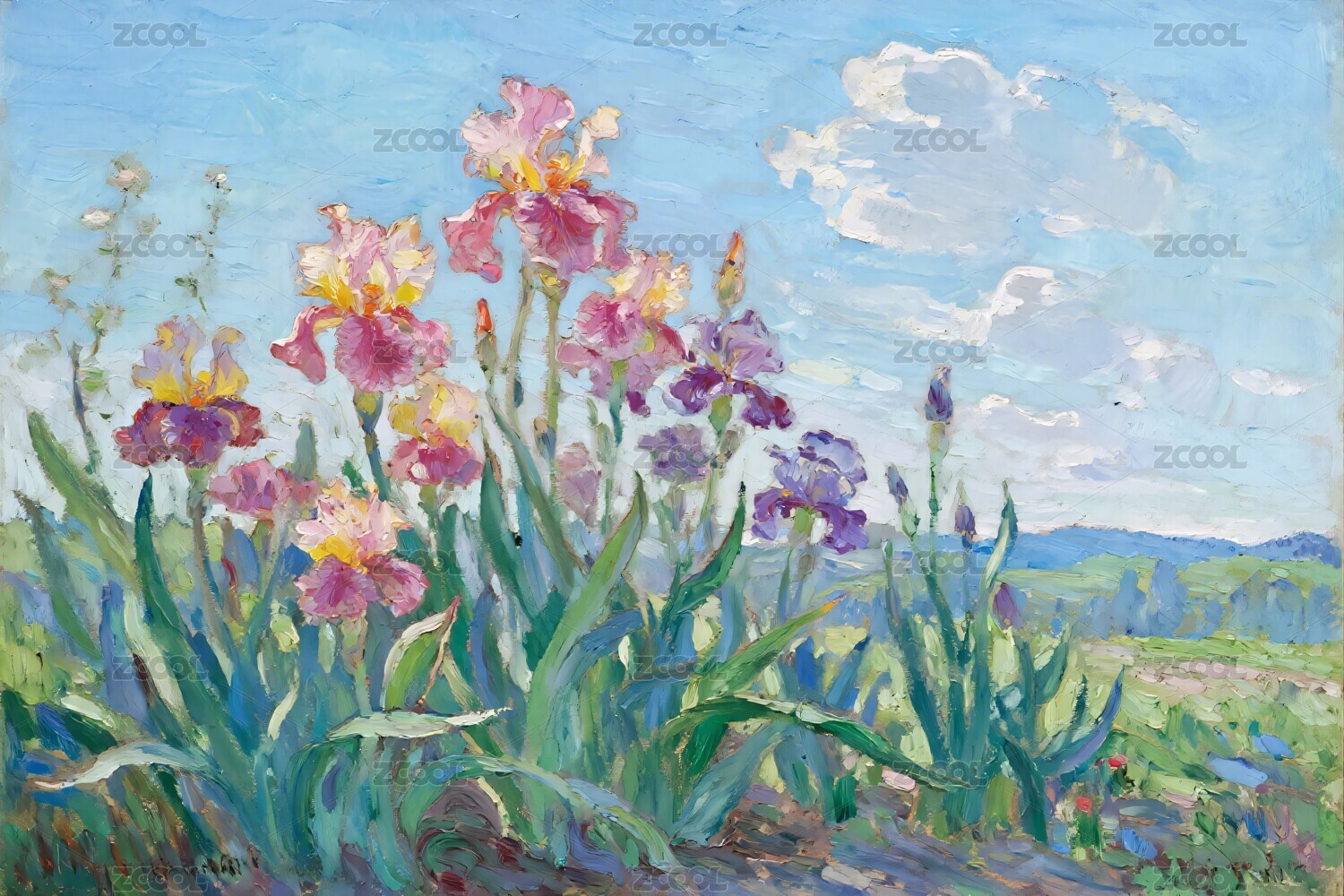 彩鳶尾花風(fēng)景油畫