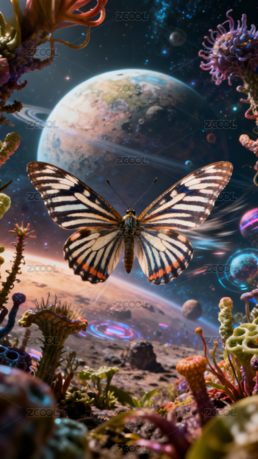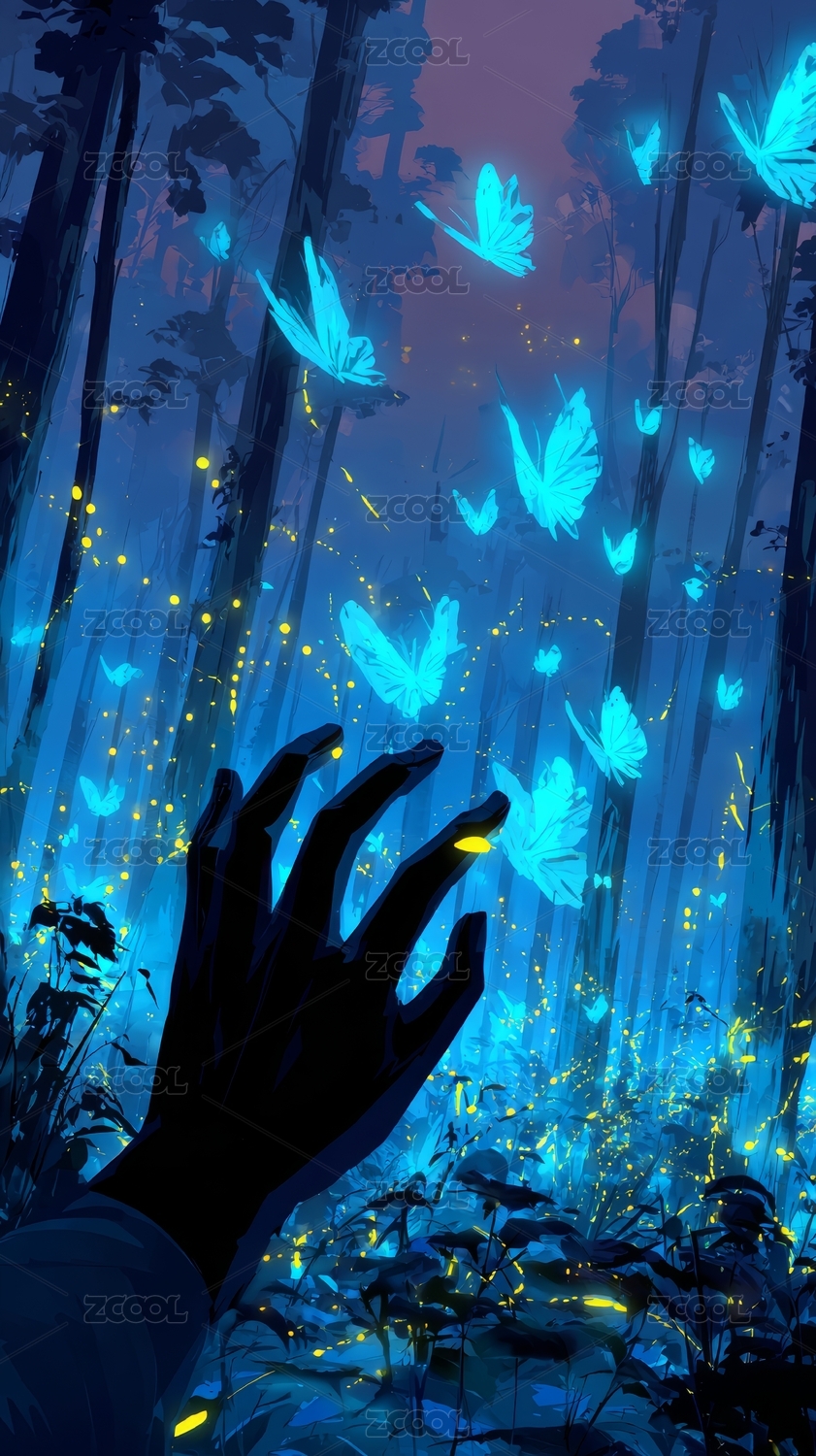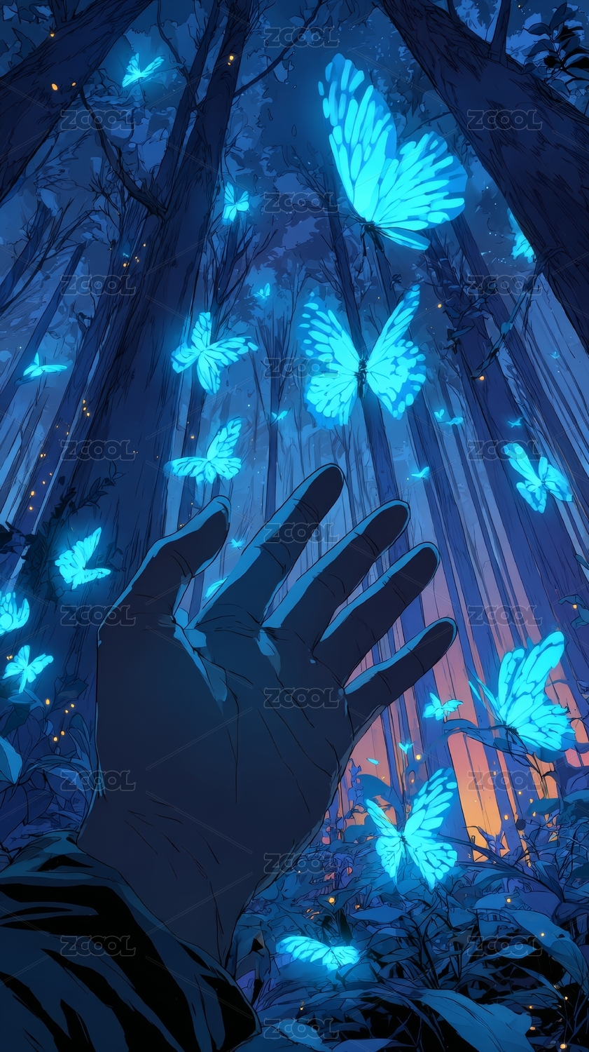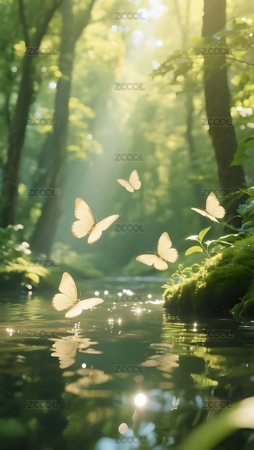 幽林蝶影夢幻感裝飾背景壁紙場景