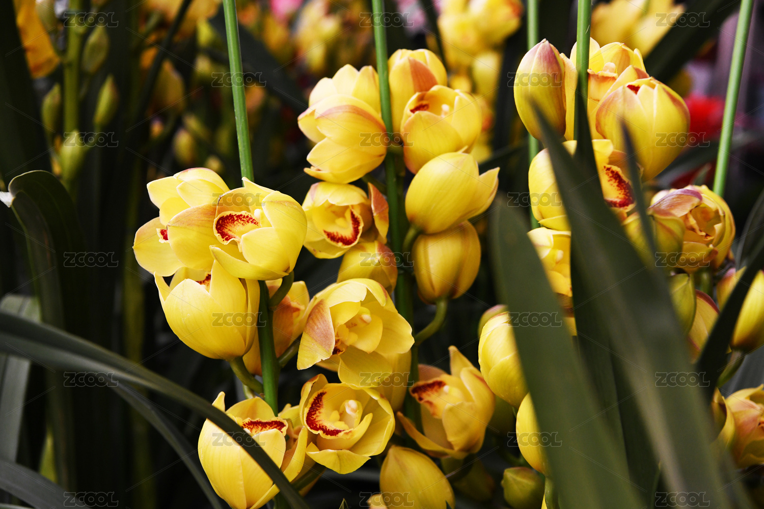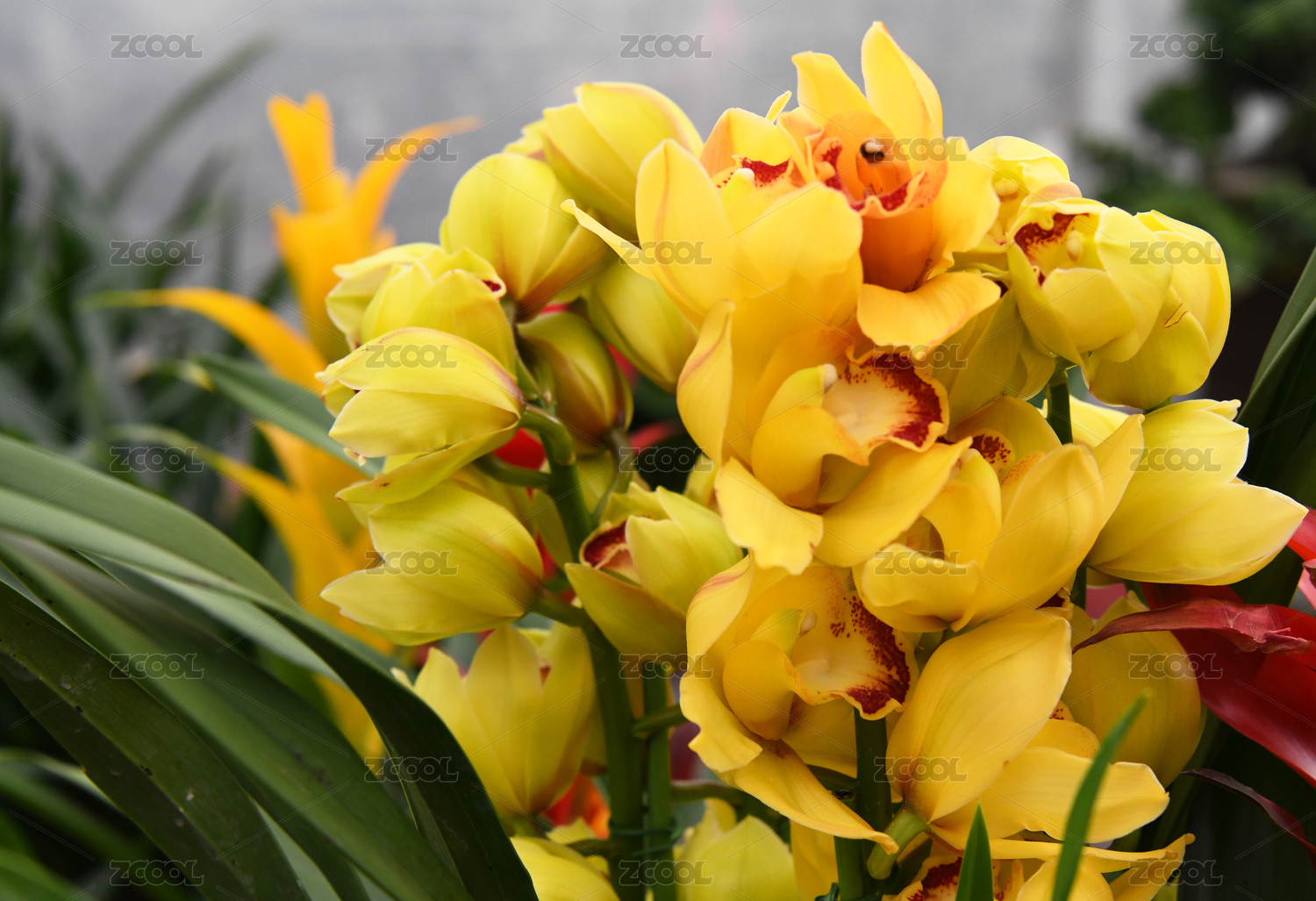 別墅小區(qū)春天盛開的大花蕙蘭