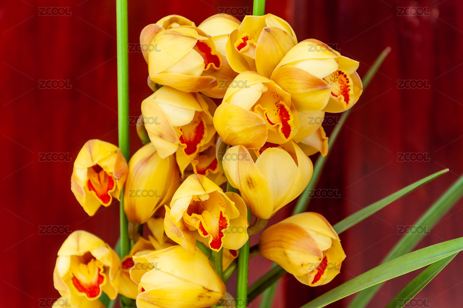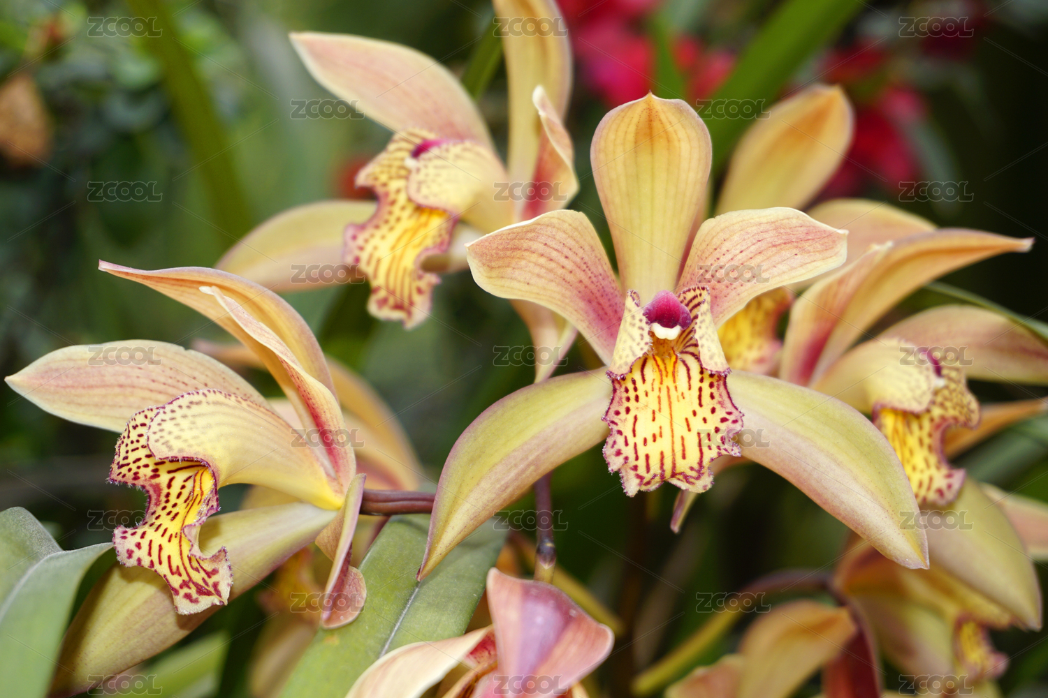 美麗盛開的紅色大花蕙蘭特寫