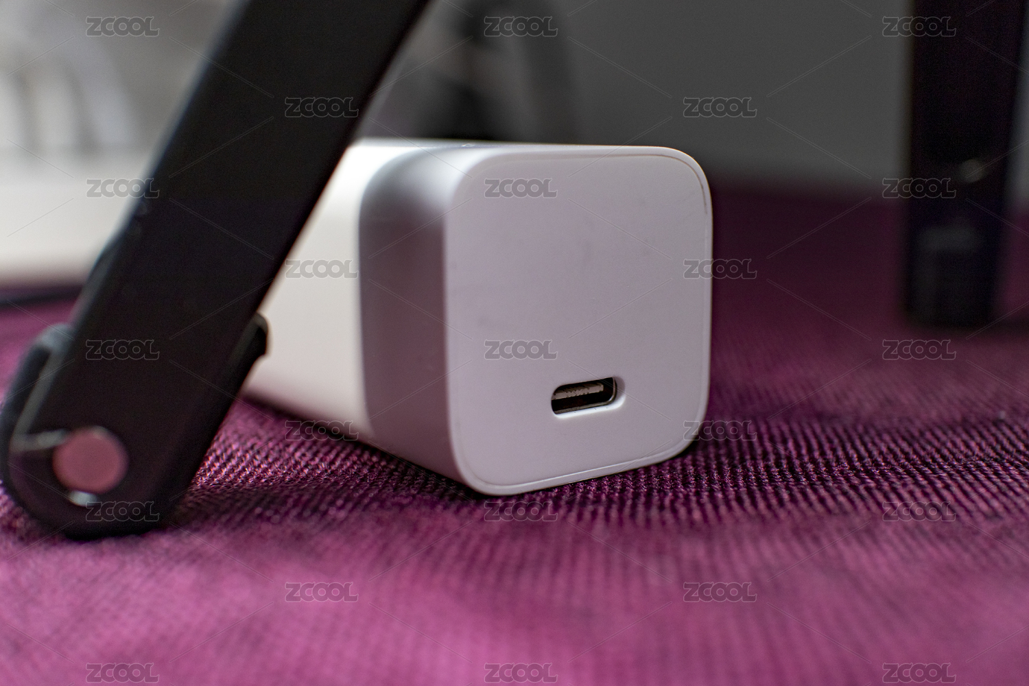 暗紅色背景下的氮化鎵充電器