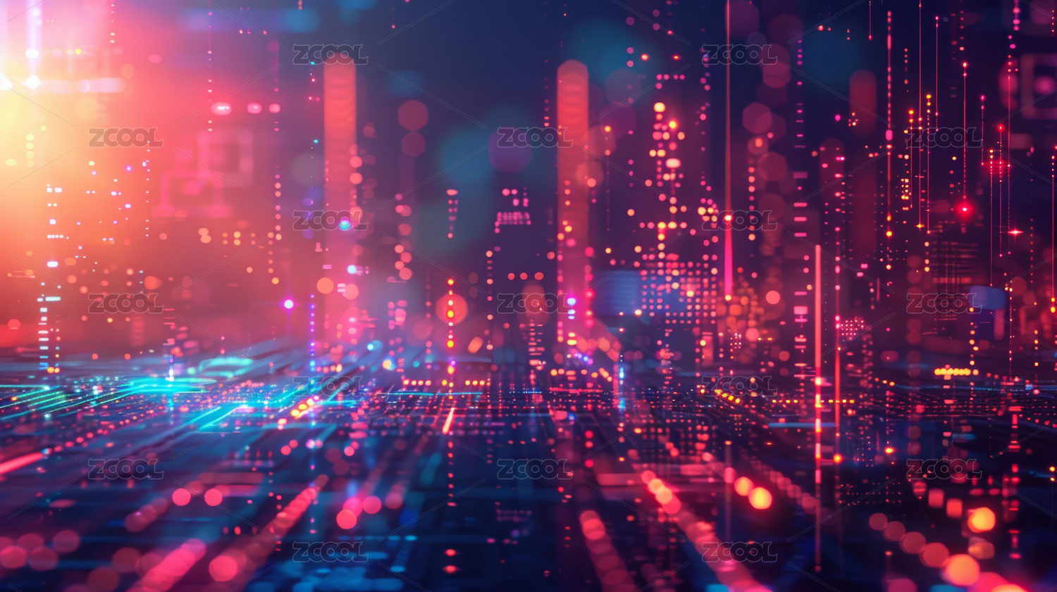 霓虹高速光纖延伸時空隧道空間未來感背景