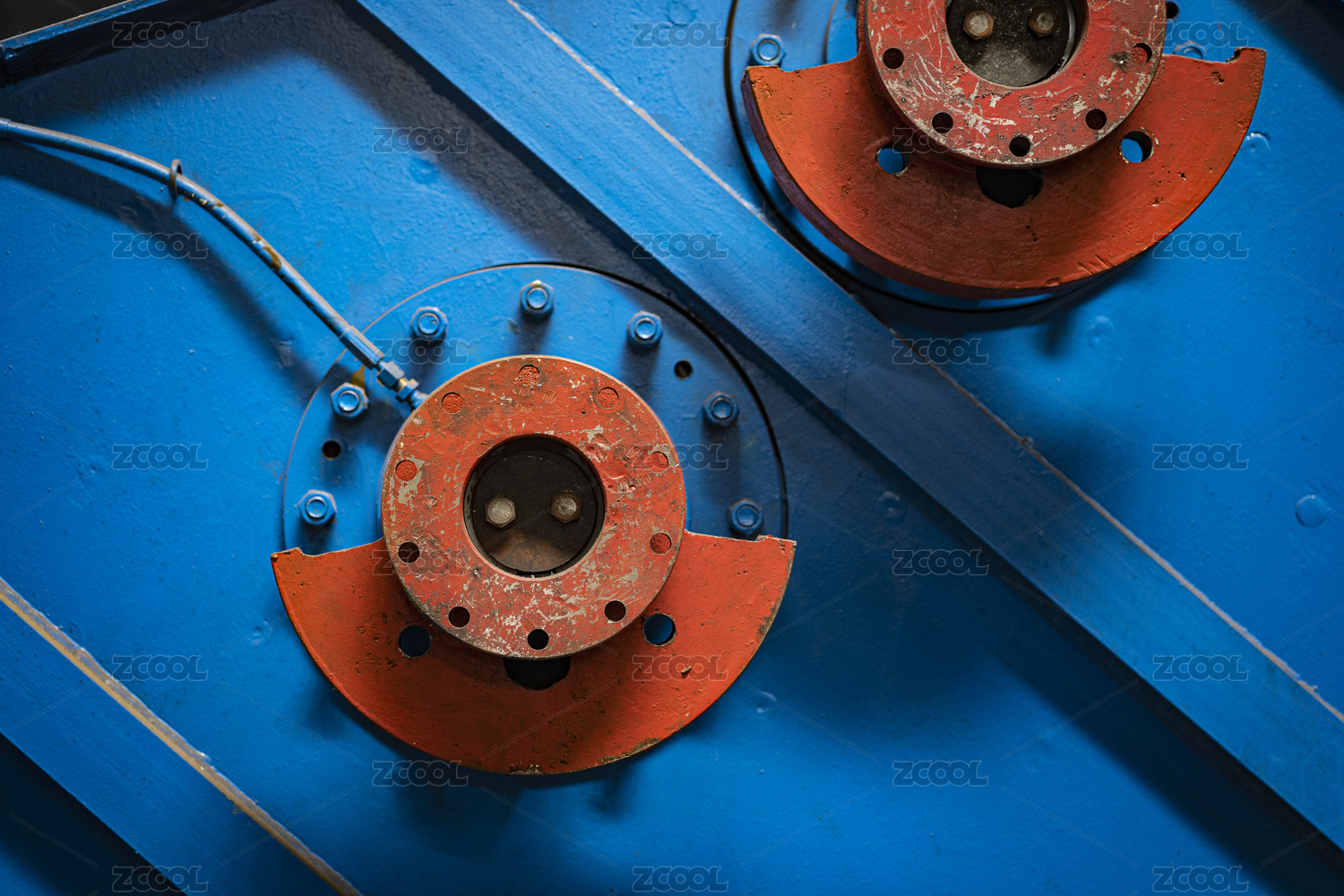 工廠車間里的紅藍兩色機械設(shè)備