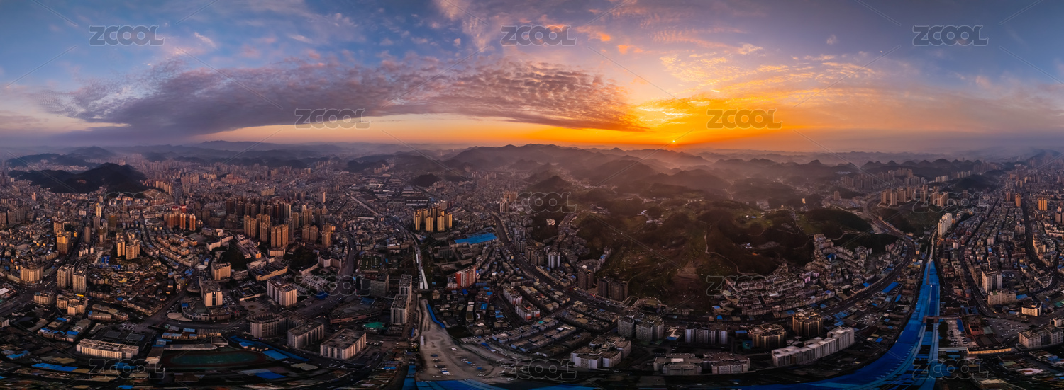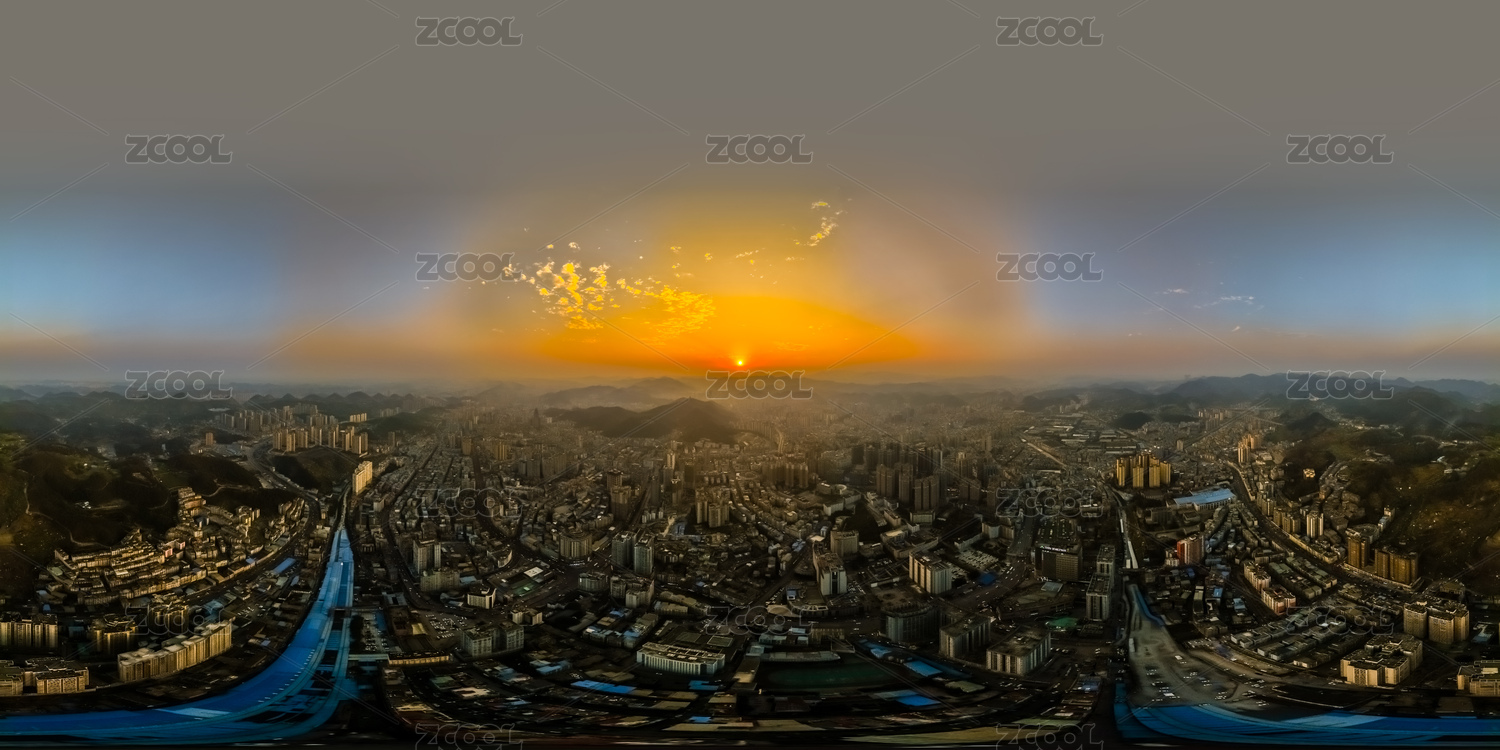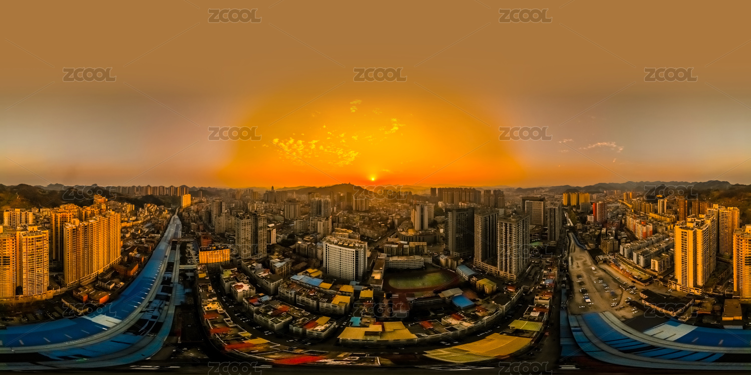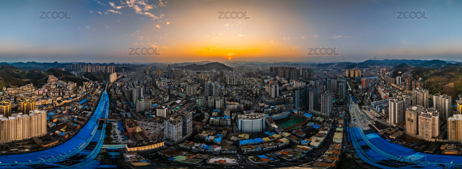 中國貴州省遵義市720度全景黃昏高樓大廈