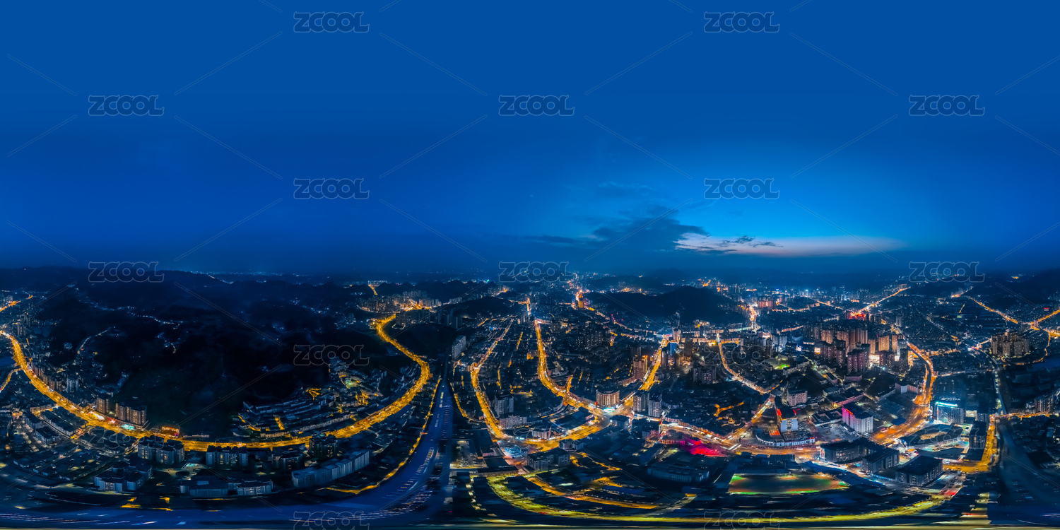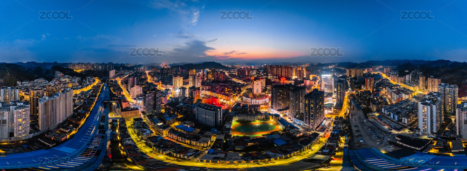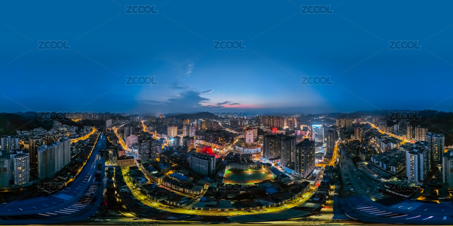 中國貴州省遵義市720度全景夜晚高樓大廈