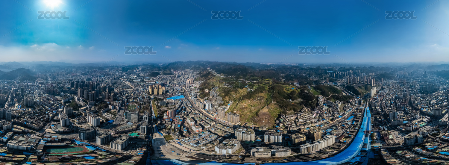 中國貴州省720度全景遵義市城區(qū)高樓建筑