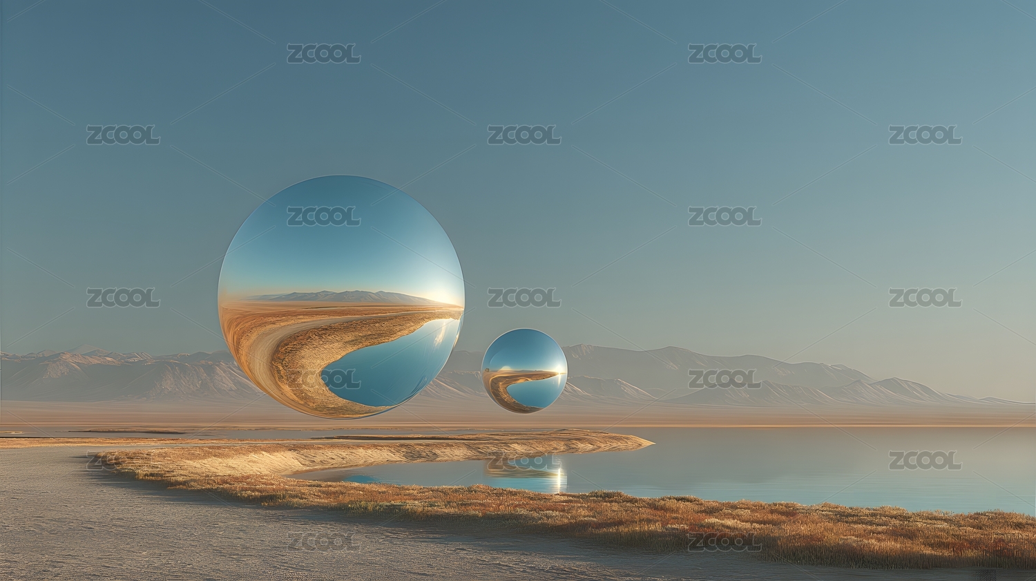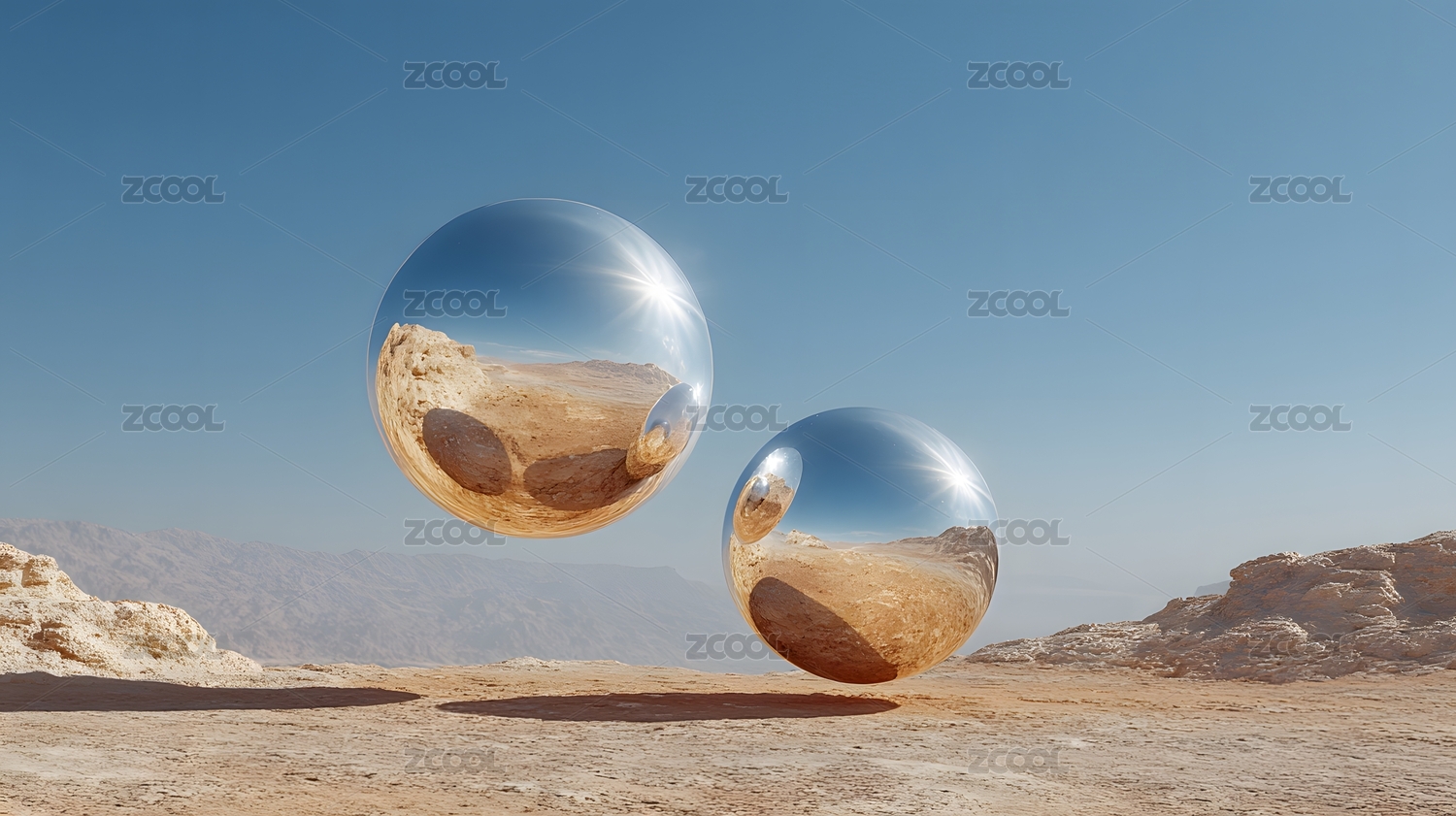 漂浮鏡球映沙漠 寧靜超現(xiàn)實(shí)風(fēng)景