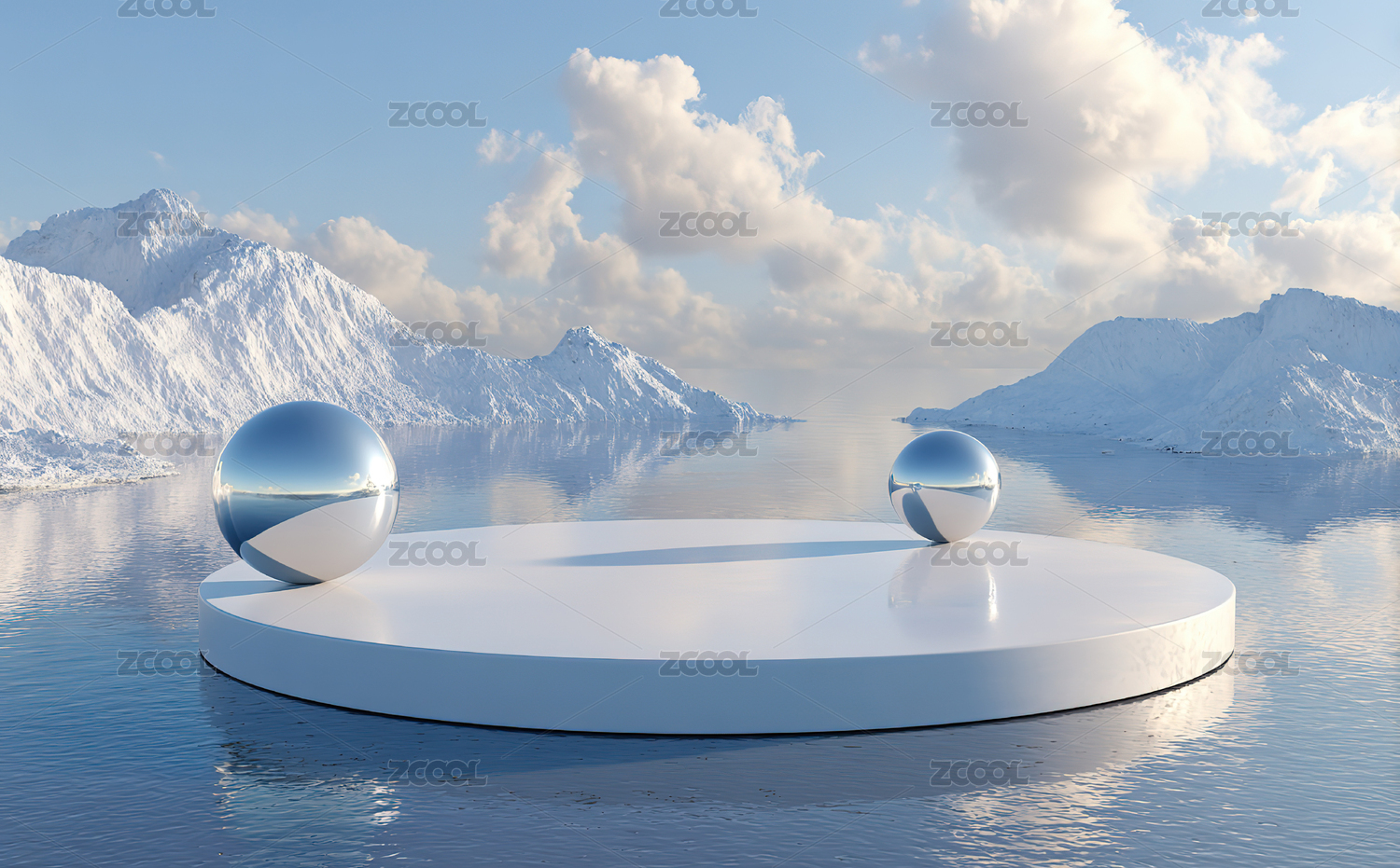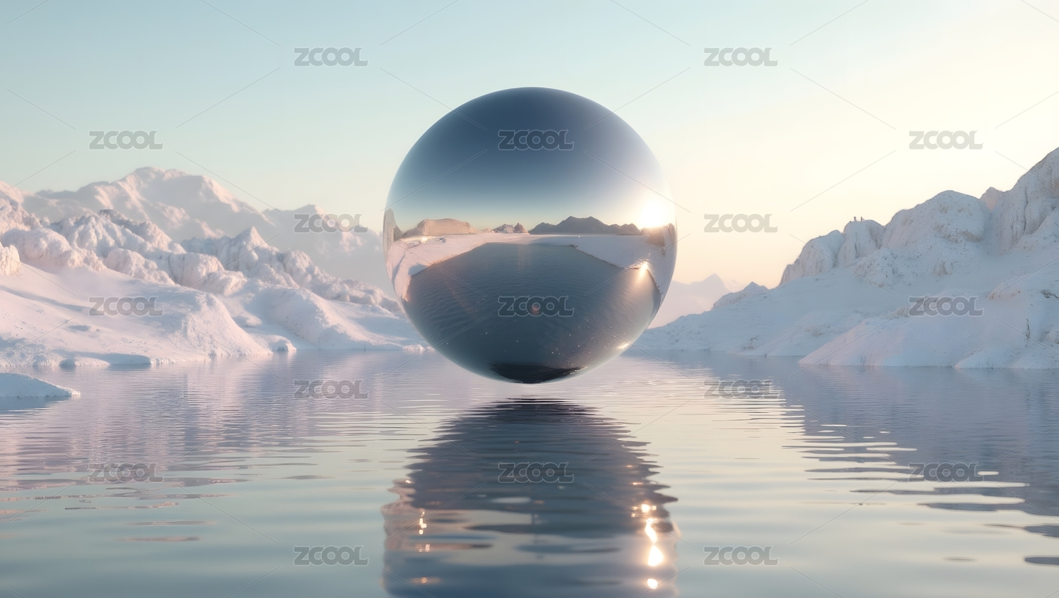 雪山湖面的鏡球平臺
