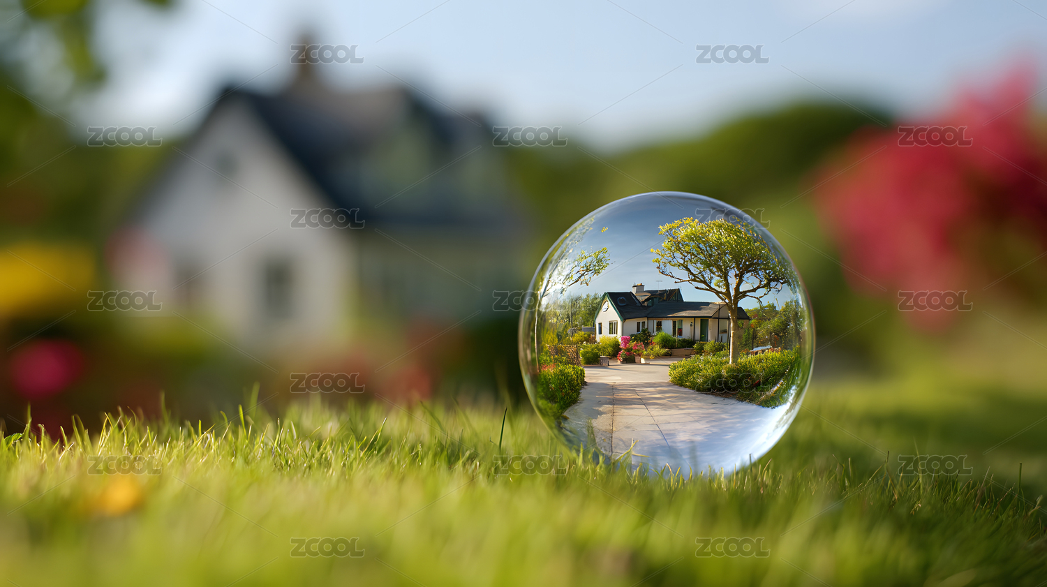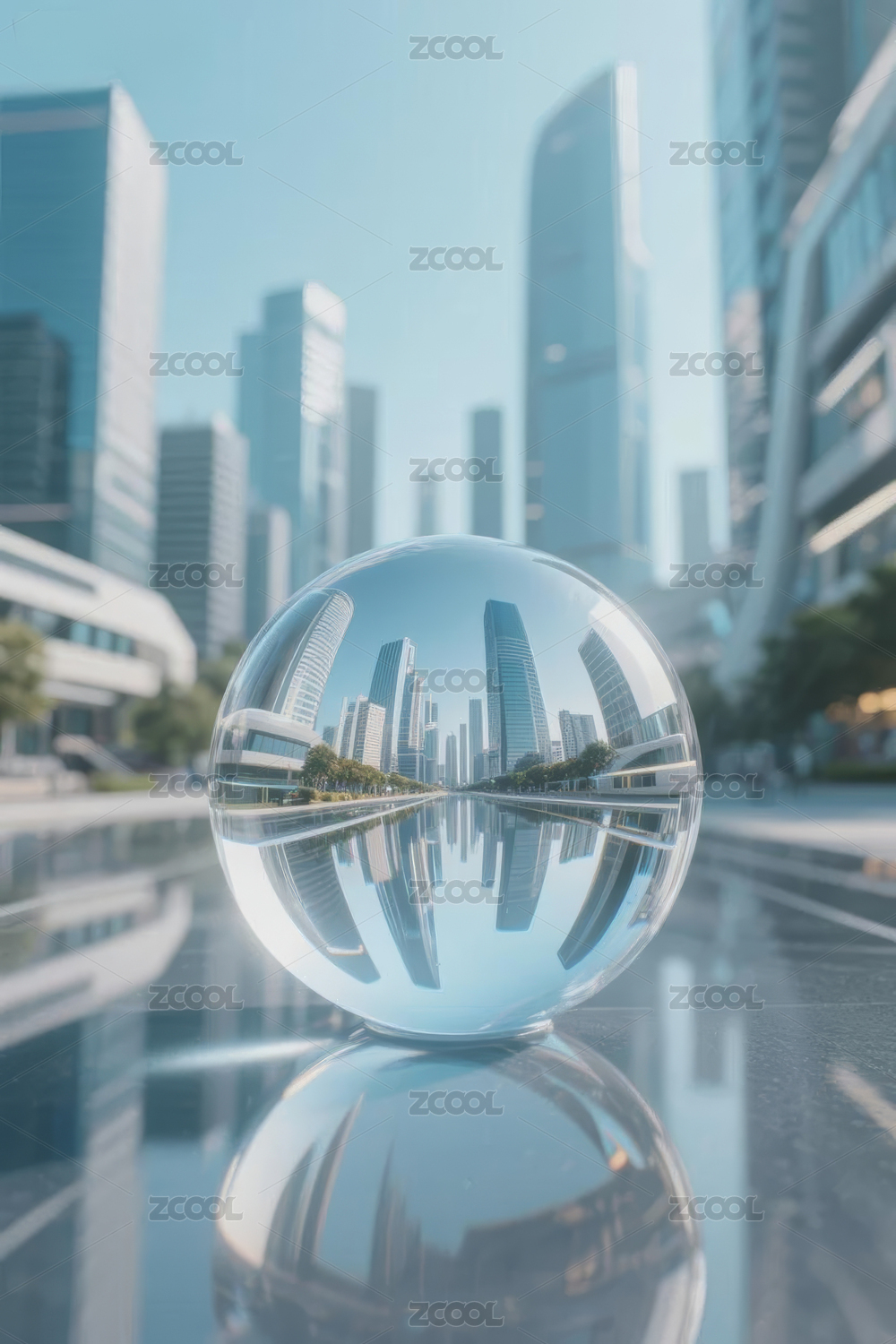 城市鏡球倒影