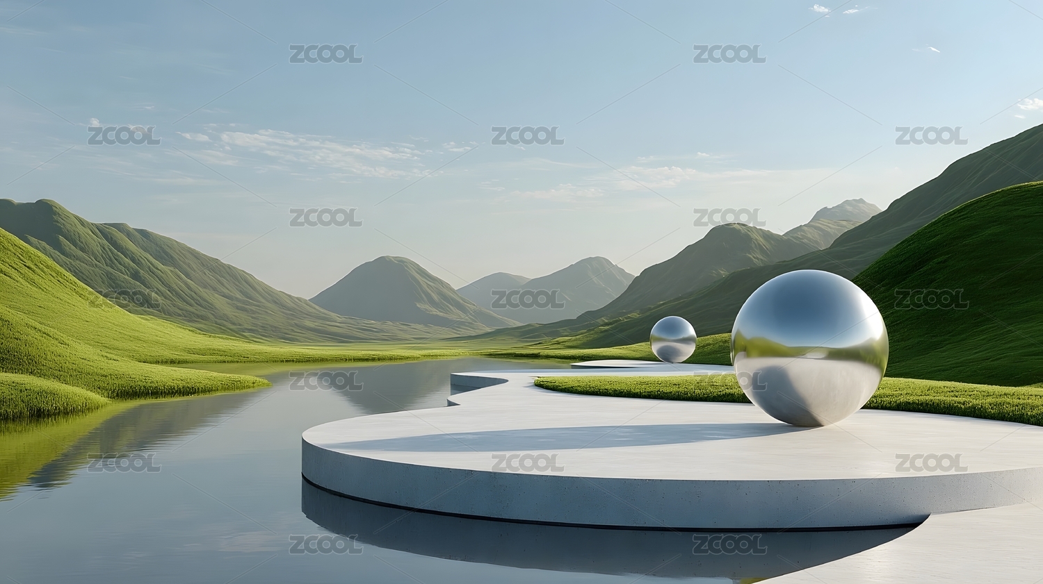 山谷鏡球靜謐景觀