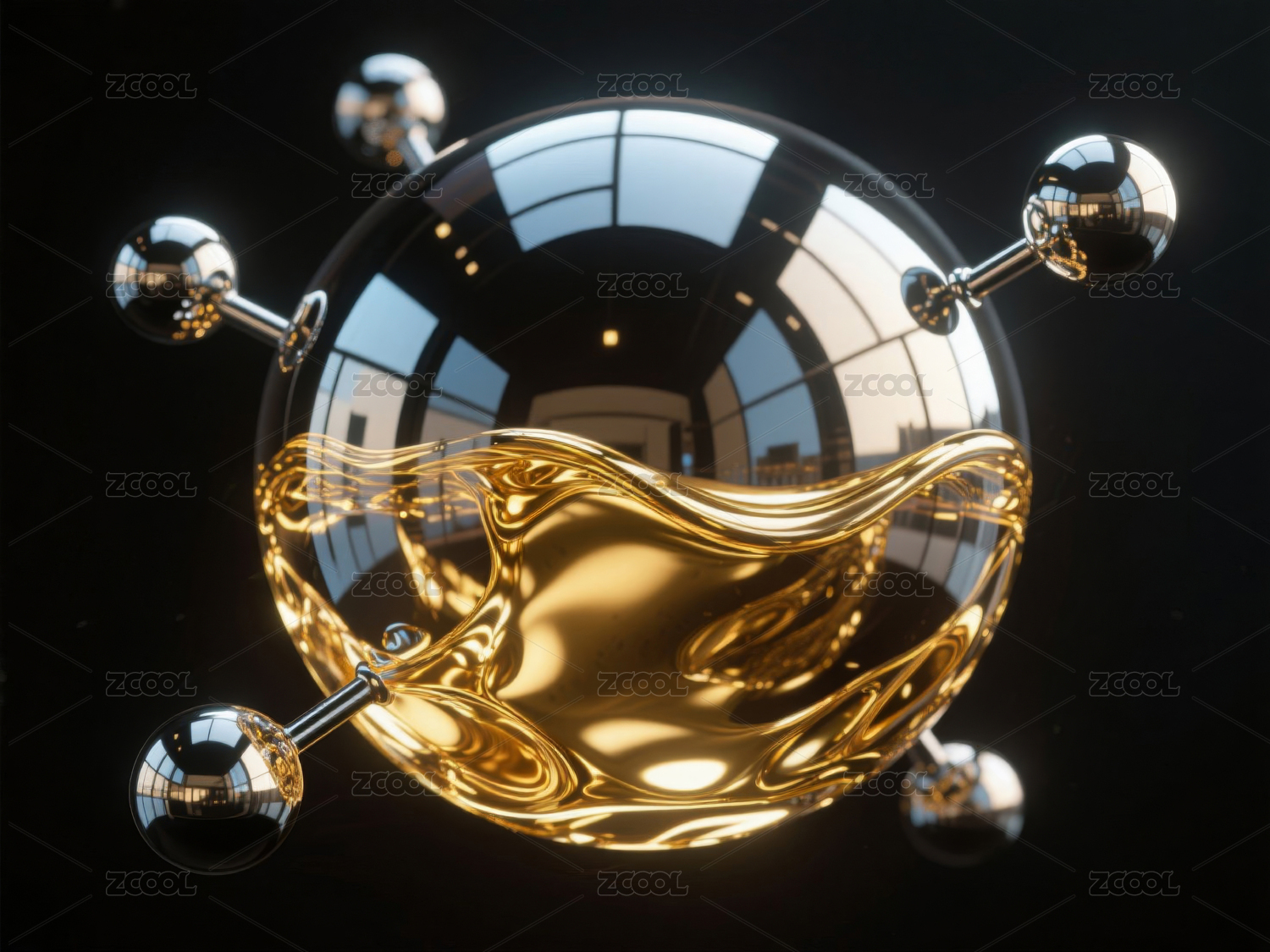 未來科技空間中的懸浮鏡球