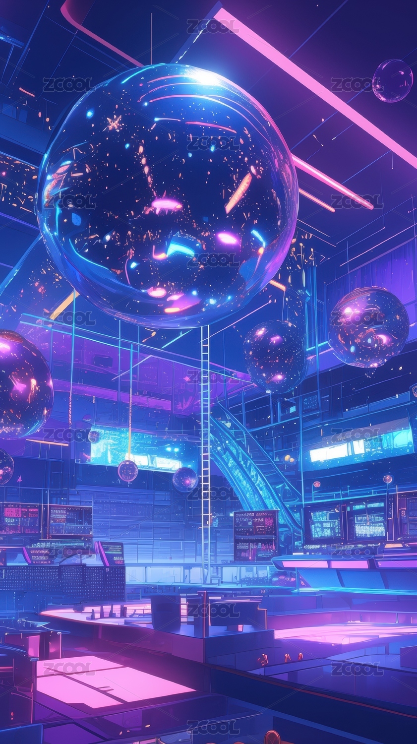 紫色背景下的鏡球