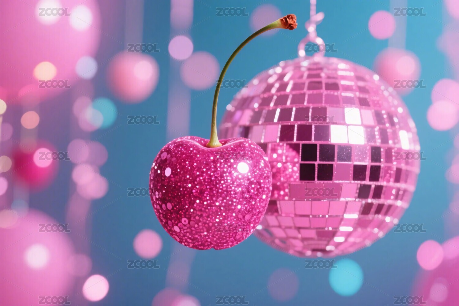 粉色櫻桃與鏡球裝飾