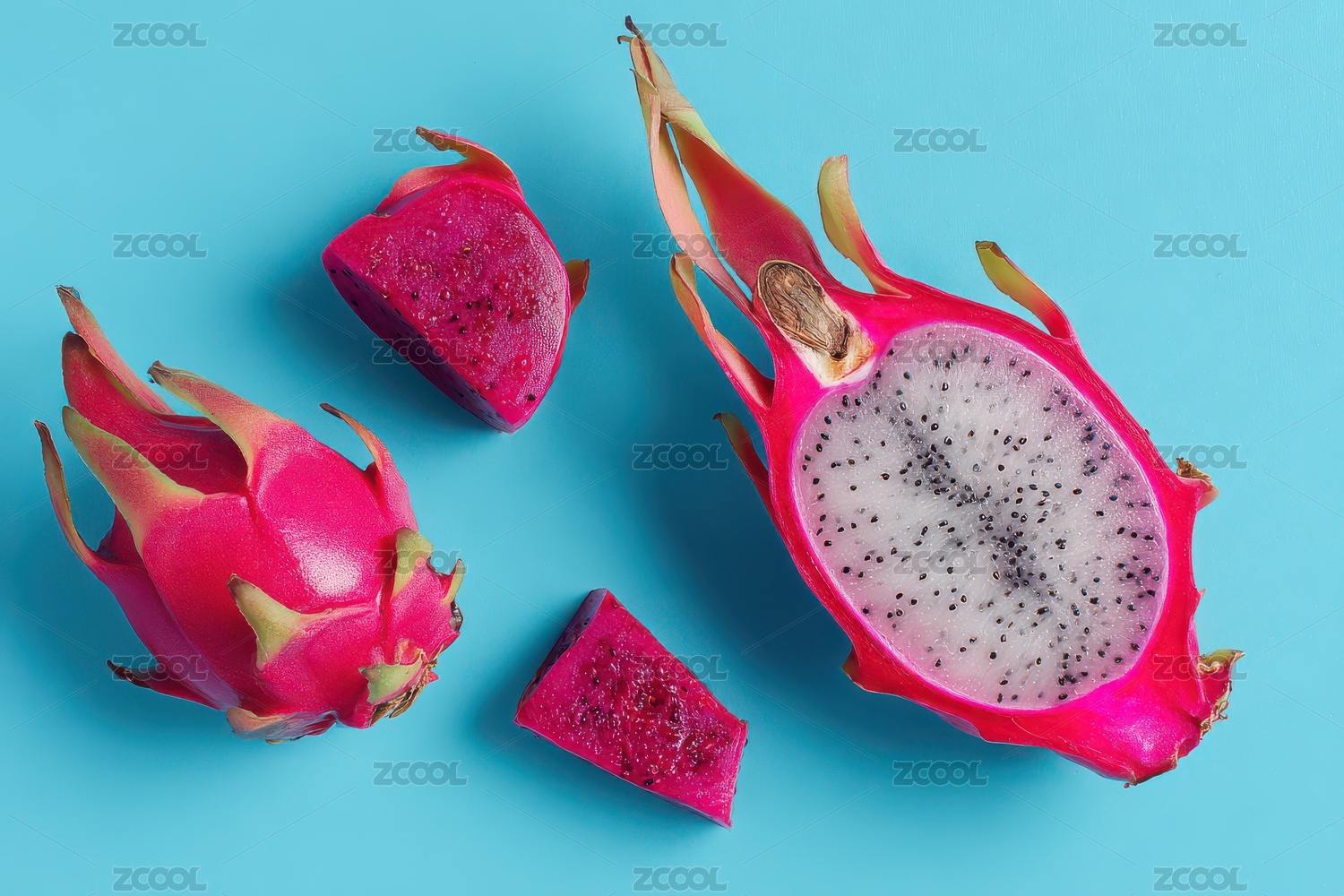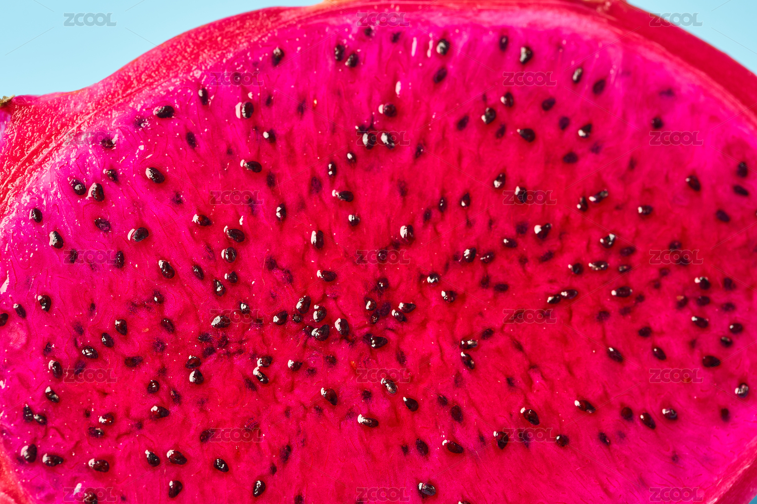 藍(lán)色背景前的紅心火龍果細(xì)節(jié)特寫