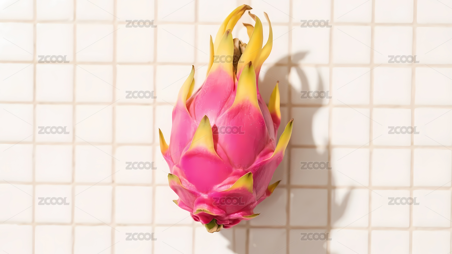 粉黃火龍果白色瓷磚背景
