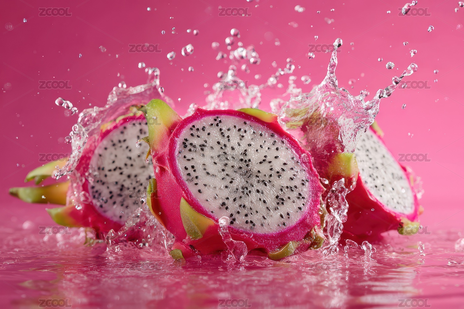 水花四濺的火龍果切片;動(dòng)感瞬間
