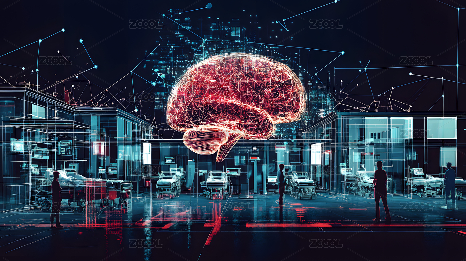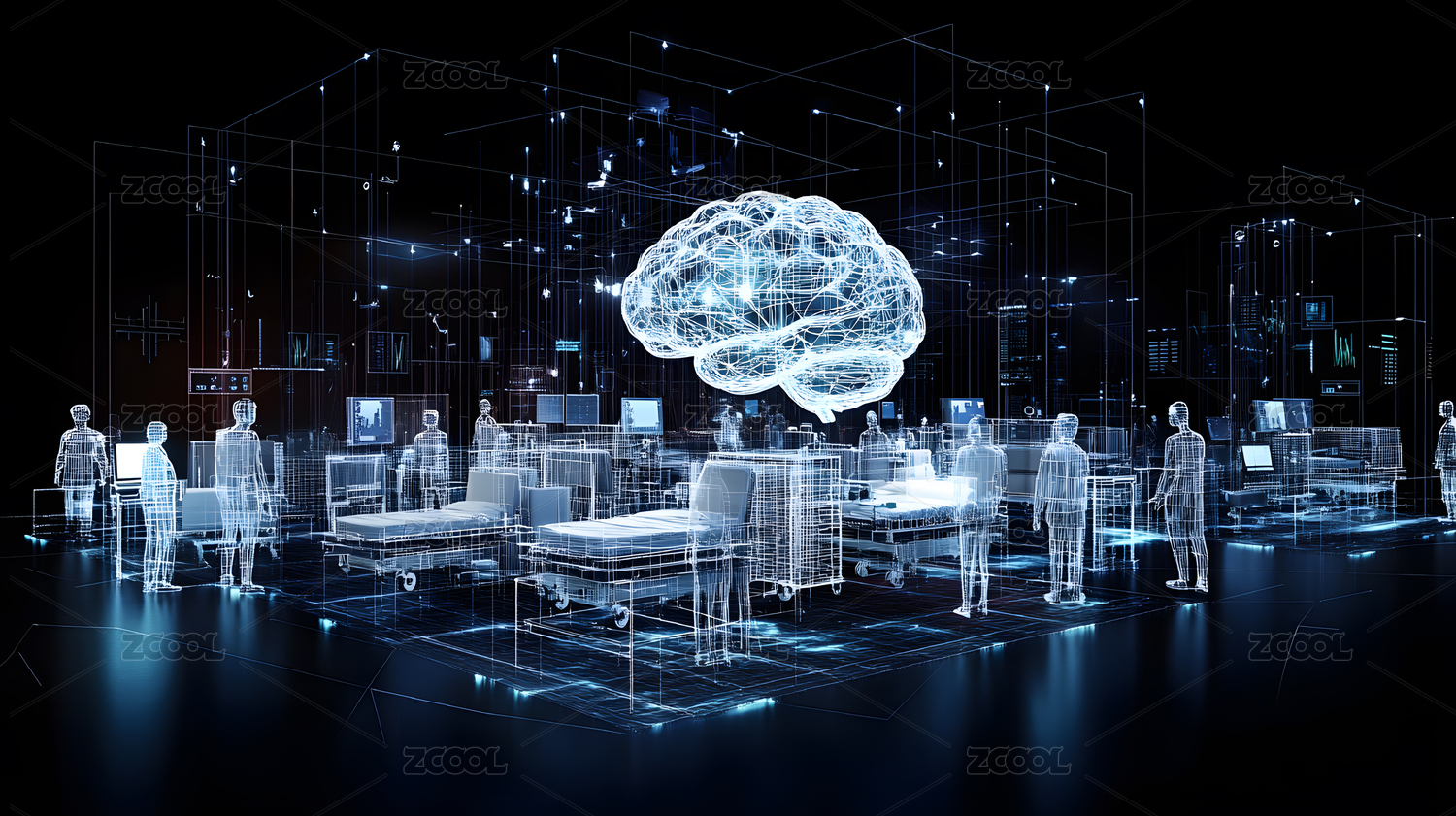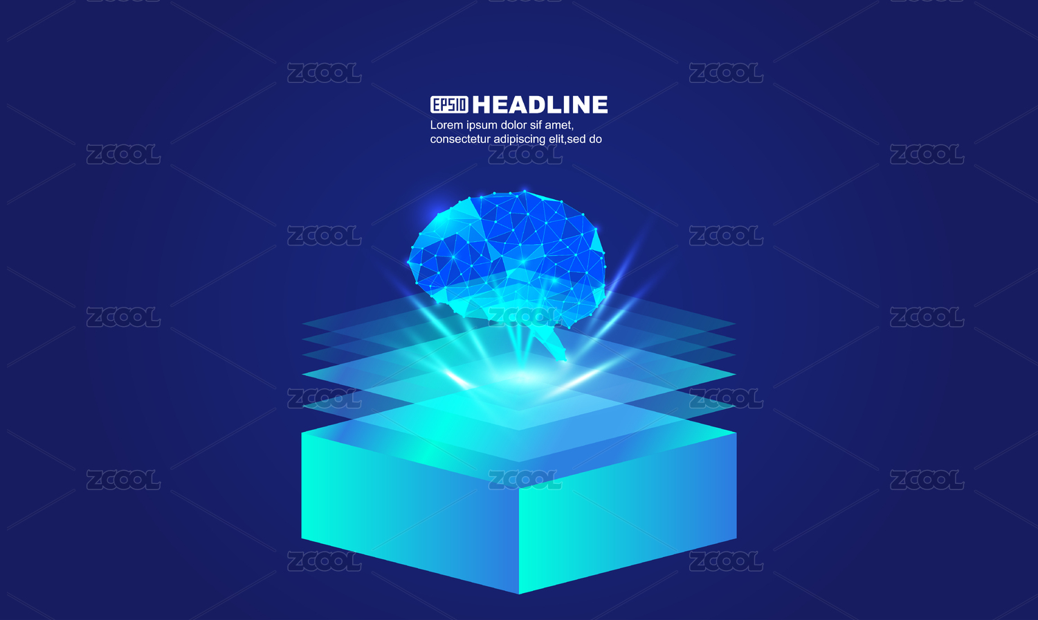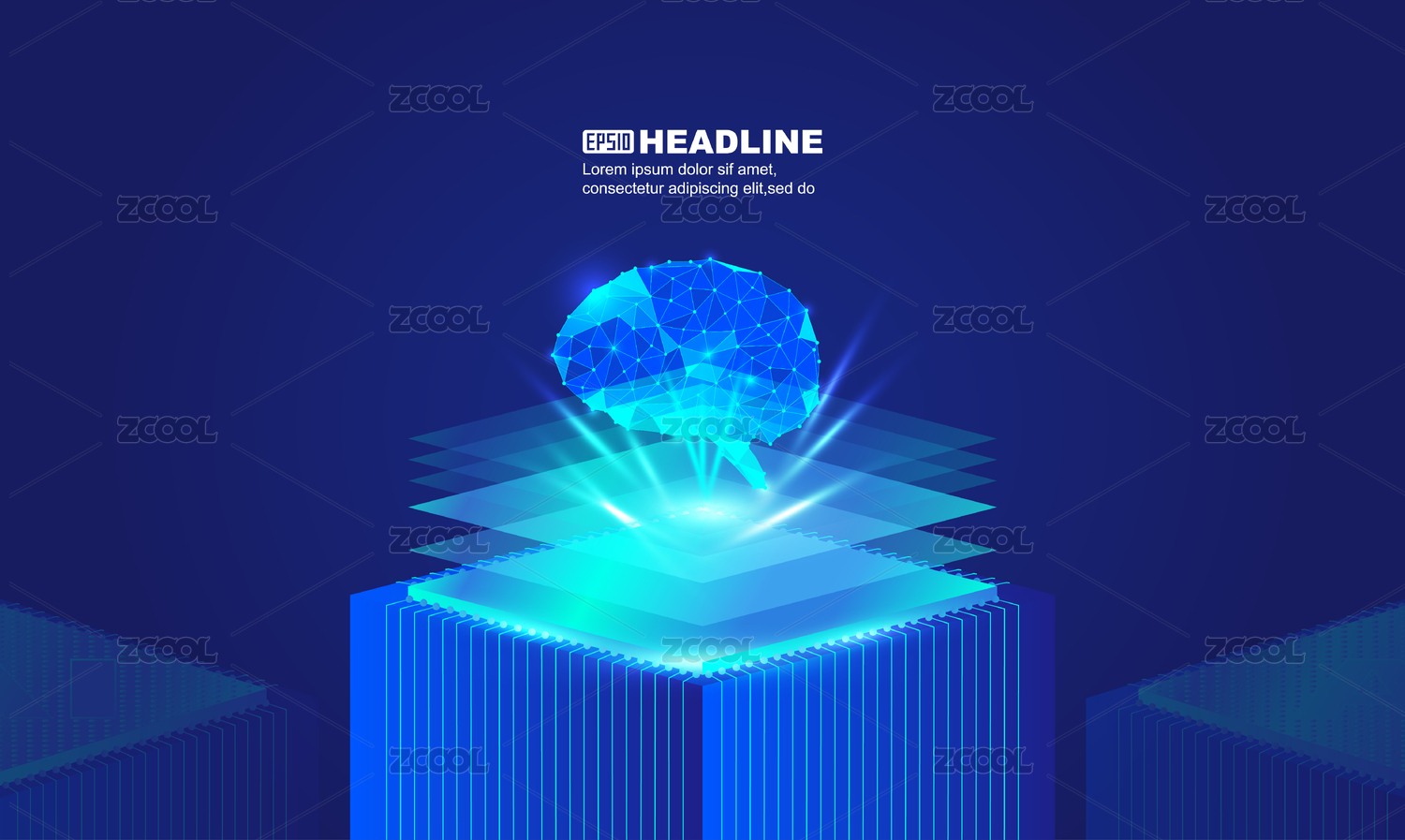 發(fā)光芯片點線鏈接的大腦人工智能腦機概念