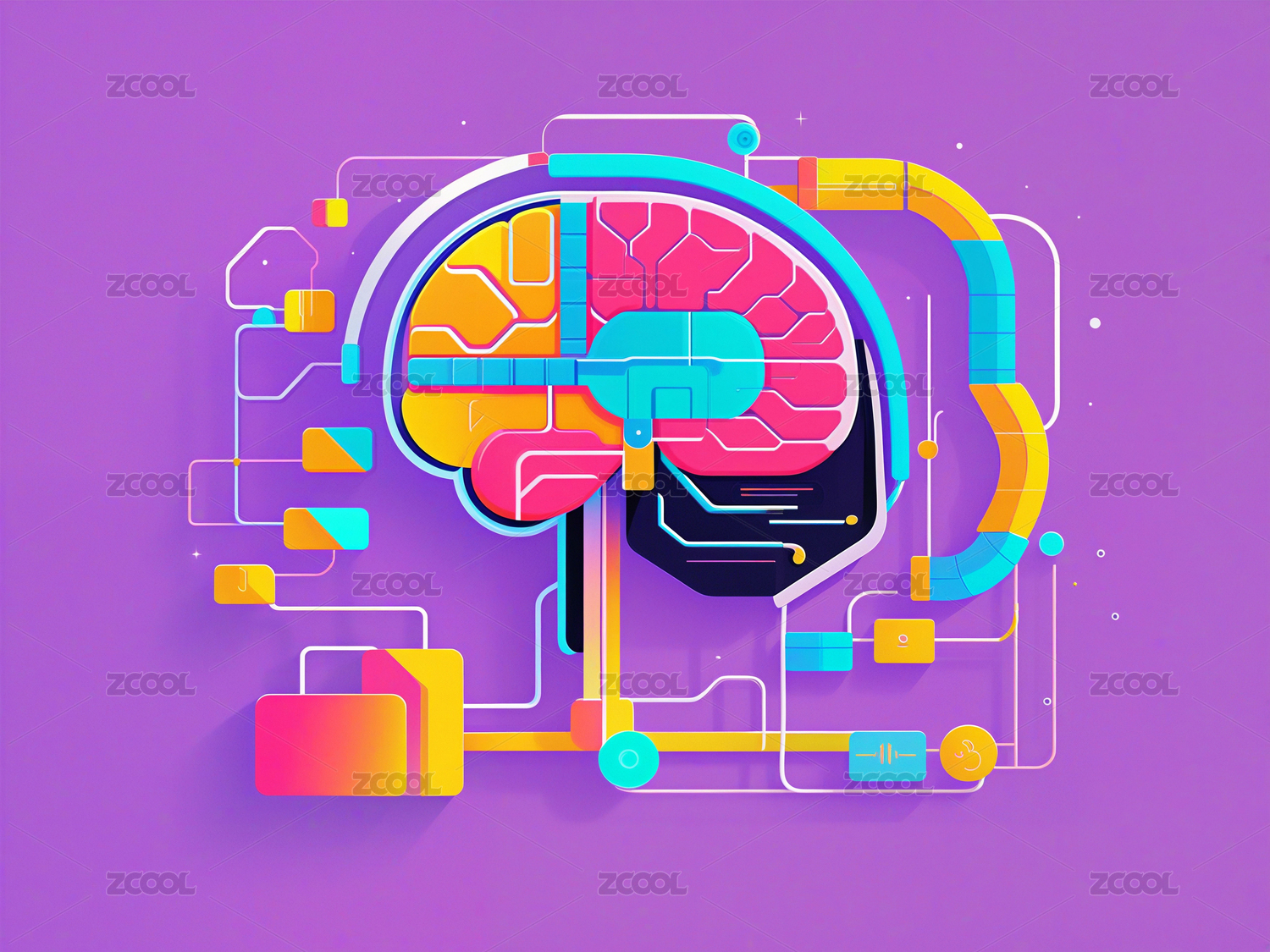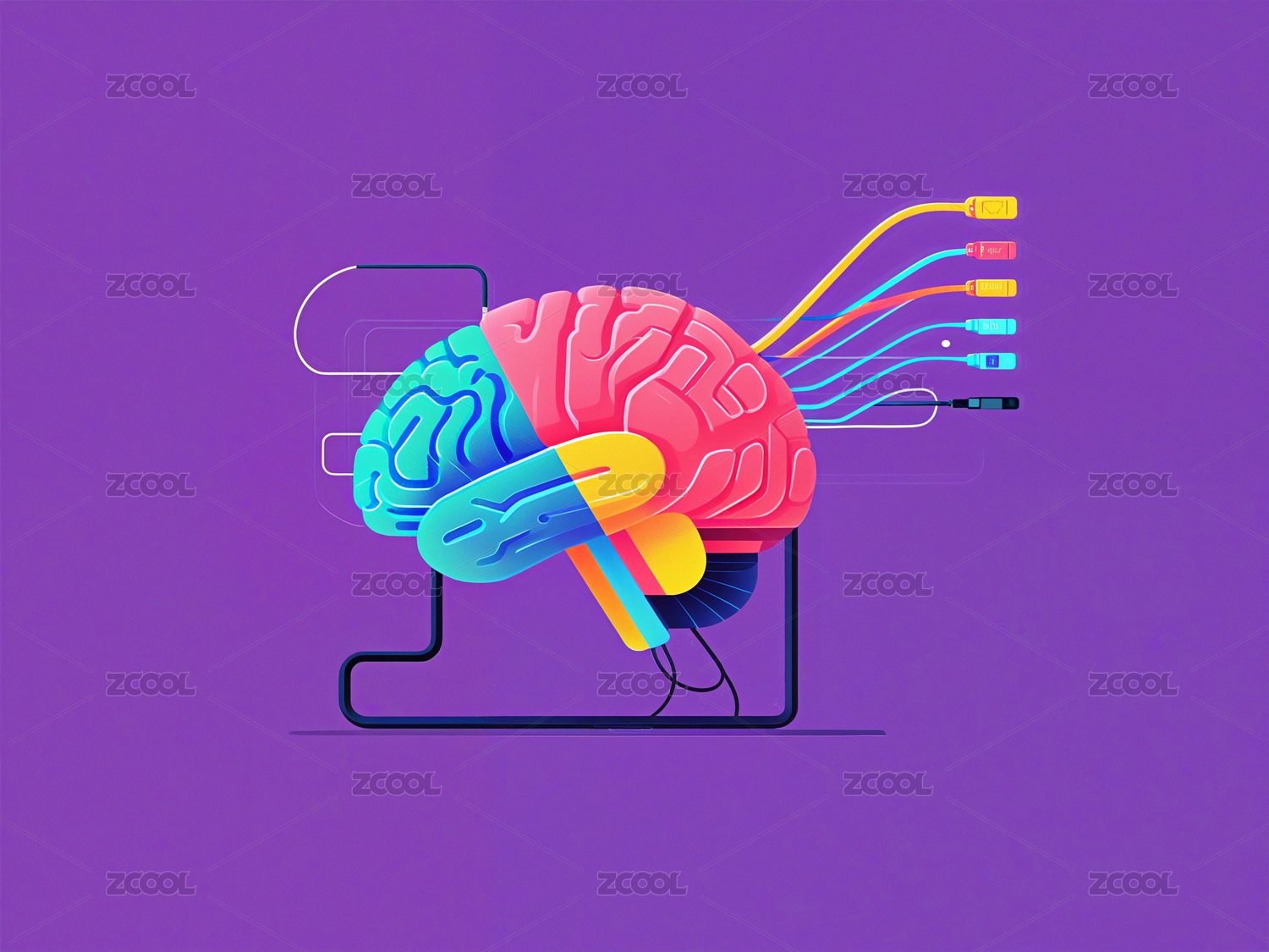科技腦機大腦插畫