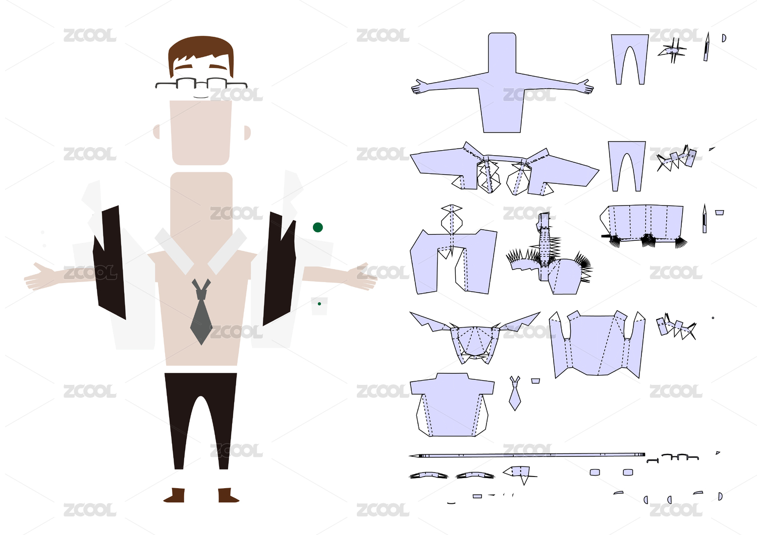西裝眼鏡男生卡通形象