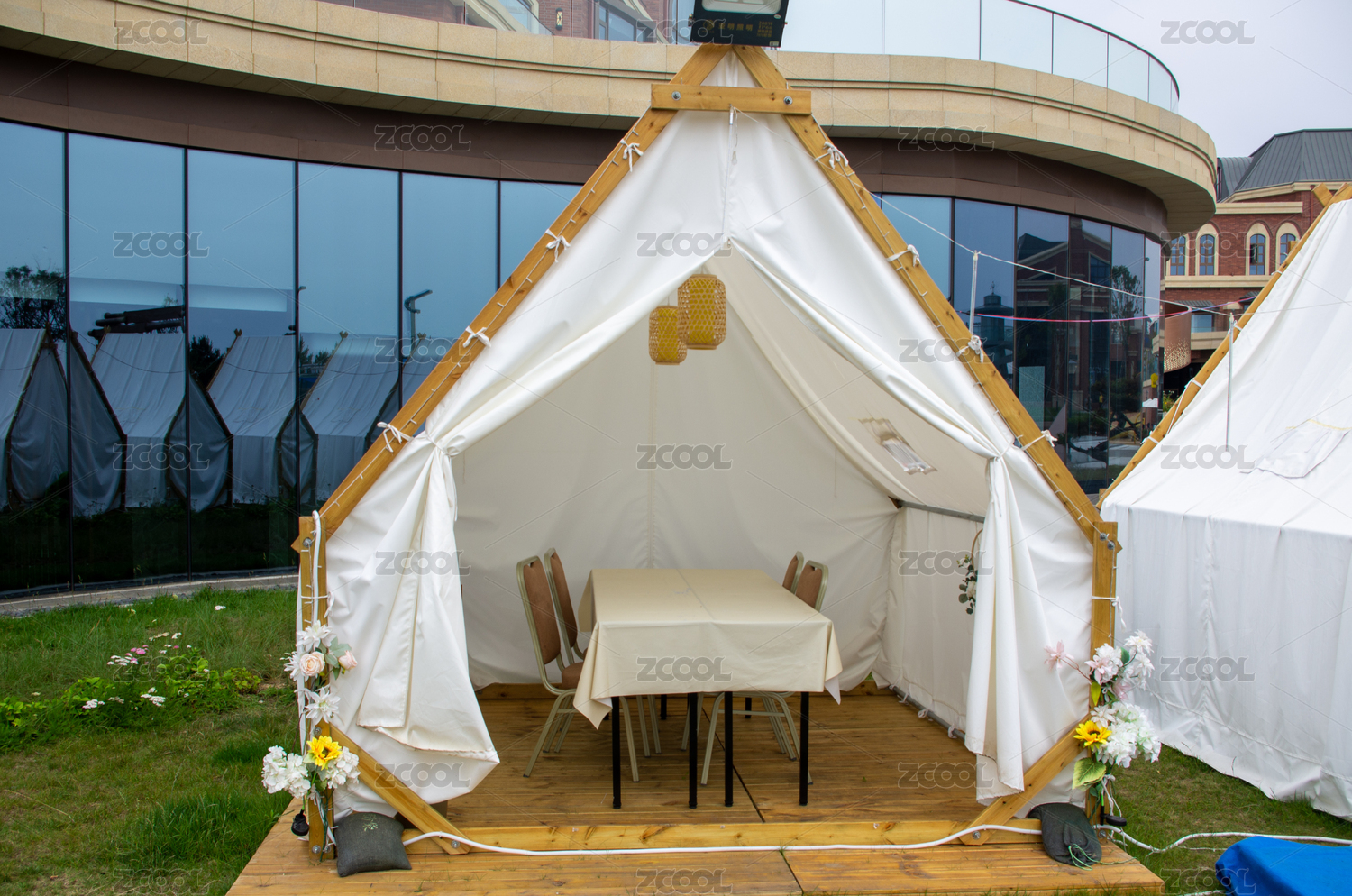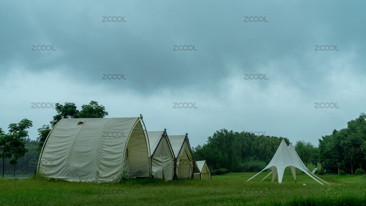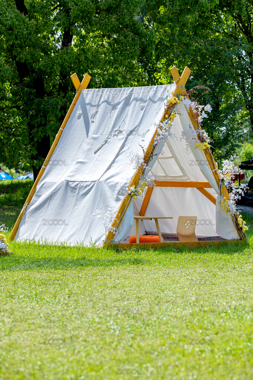 戶(hù)外草地上的白色帳篷