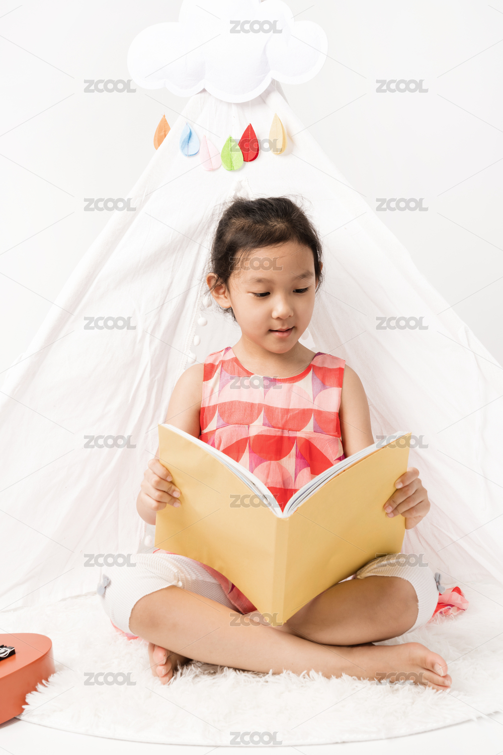 坐在白色帳篷內(nèi)讀書(shū)的女孩