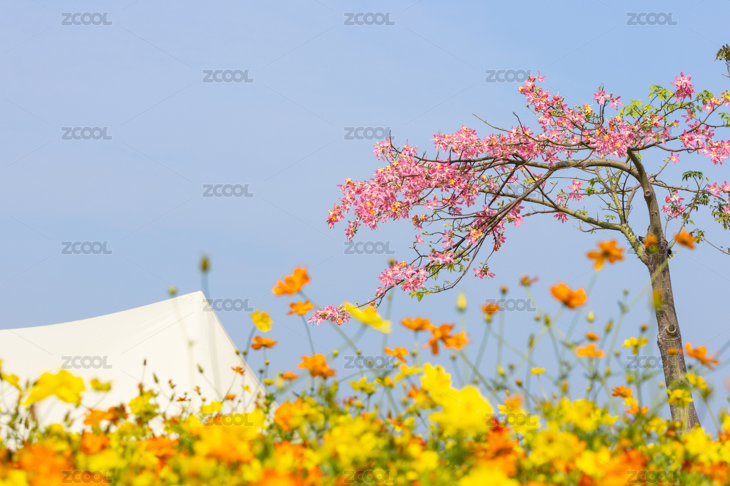 春日花海與白色帳篷