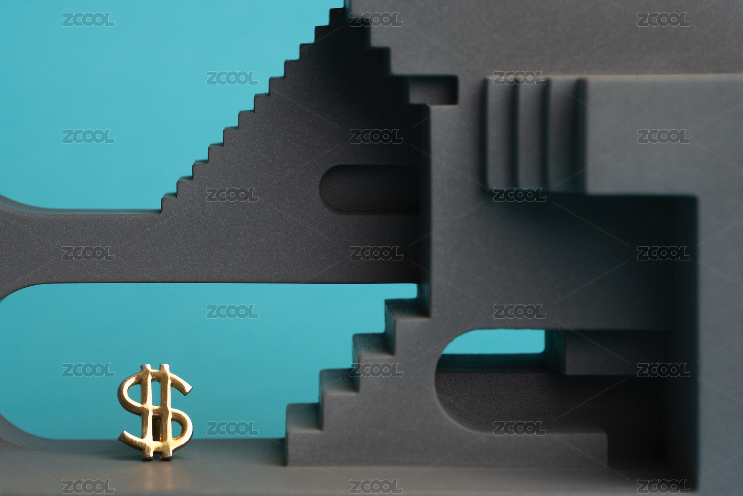不同方向的樓梯臺(tái)階側(cè)放著的貨幣符號(hào)微縮圖