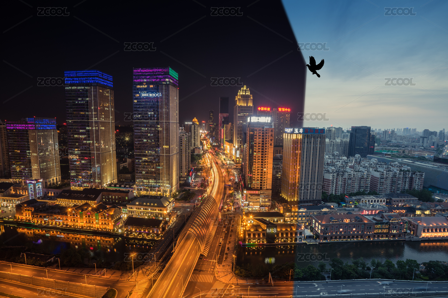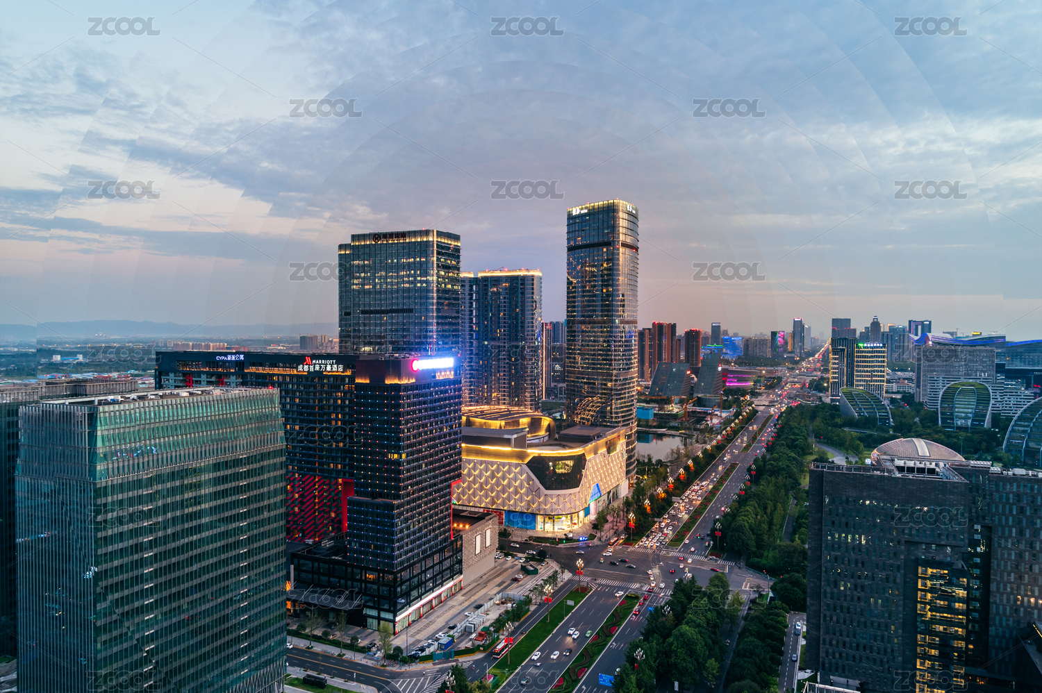 中國(guó)四川成都高新區(qū)金融城商圈地標(biāo)建筑銀泰in99日轉(zhuǎn)夜時(shí)間切片