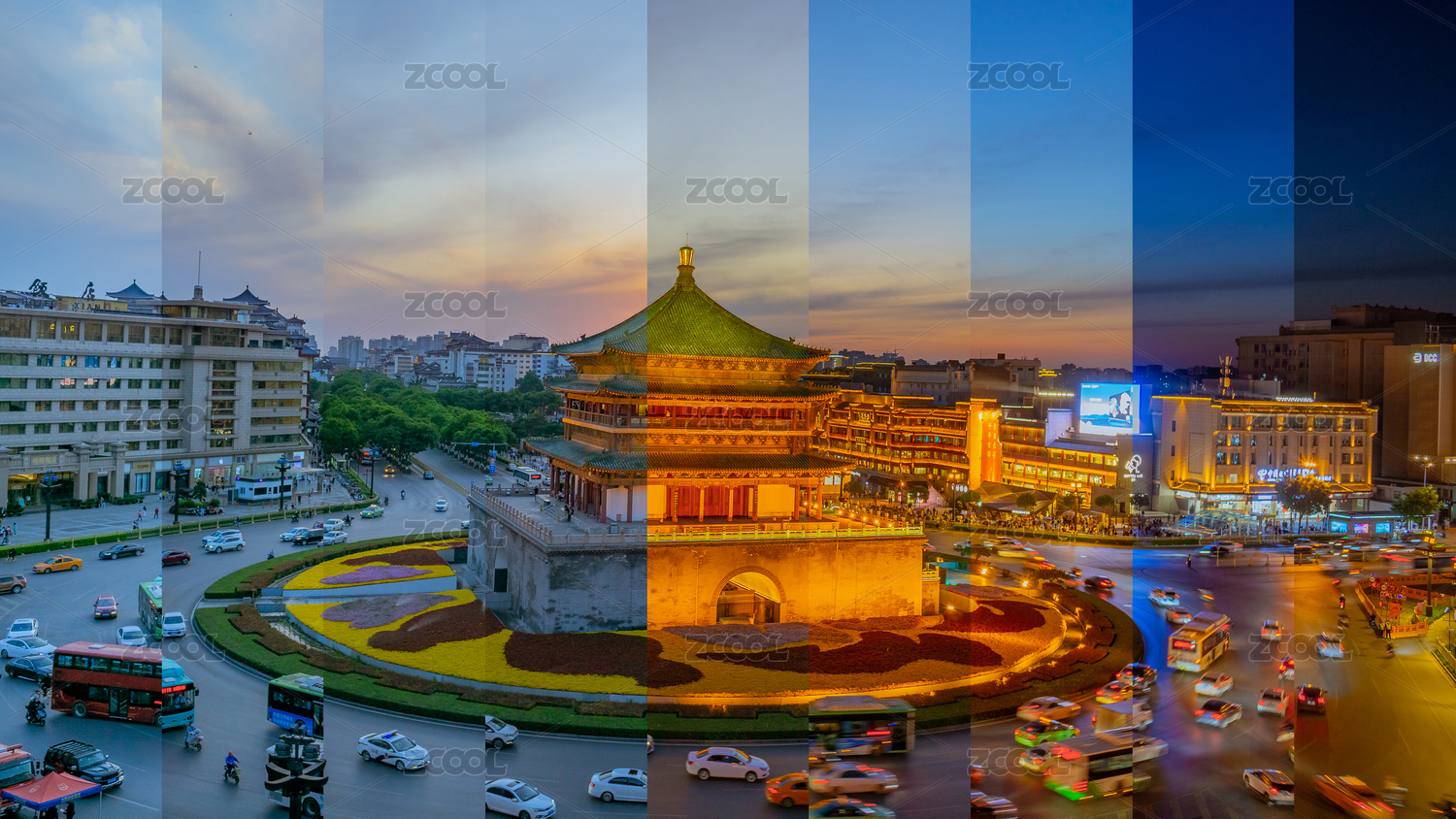 中國(guó)陜西西安日轉(zhuǎn)夜時(shí)間切片