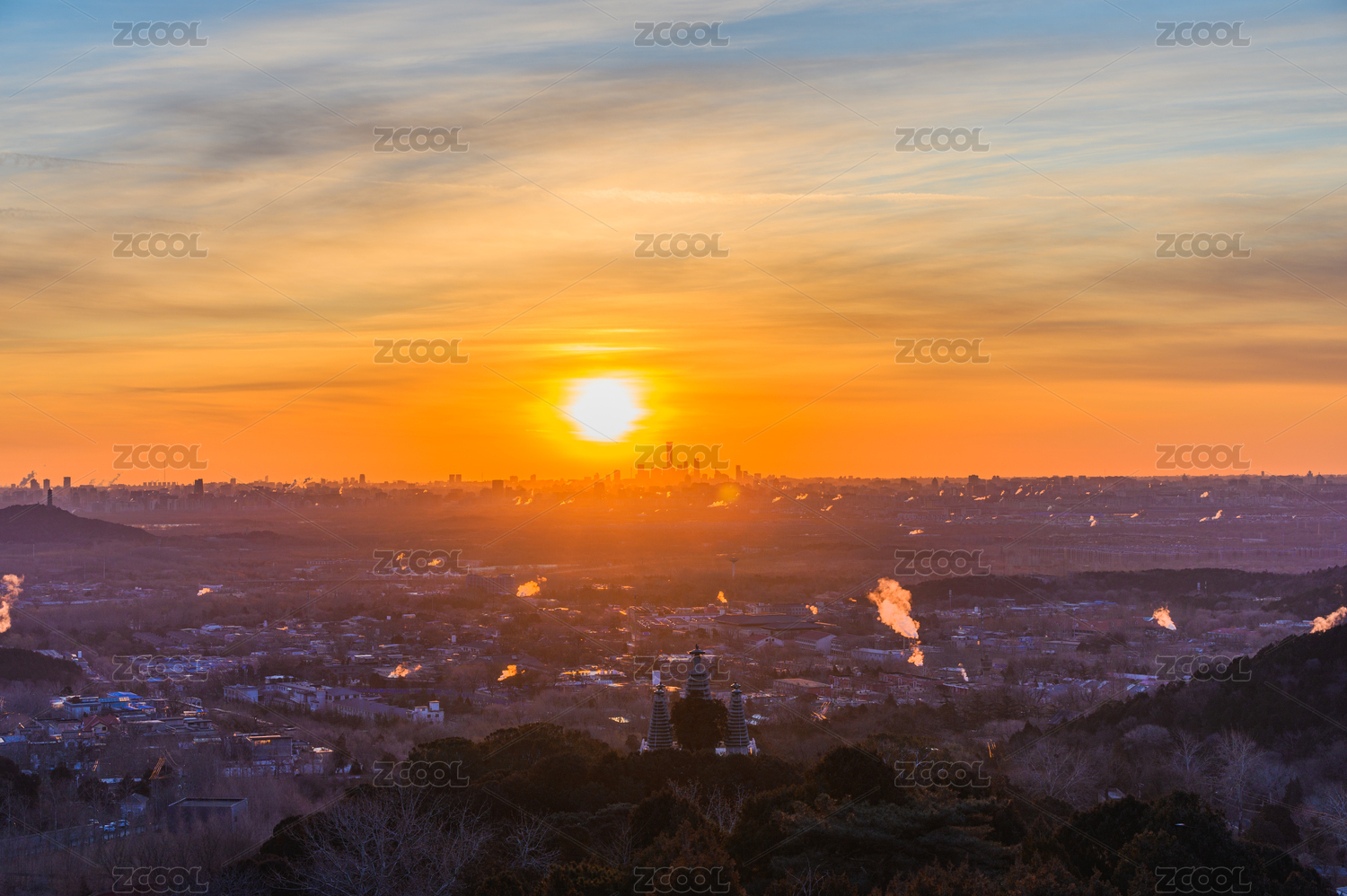 北京城市天際線日出朝霞