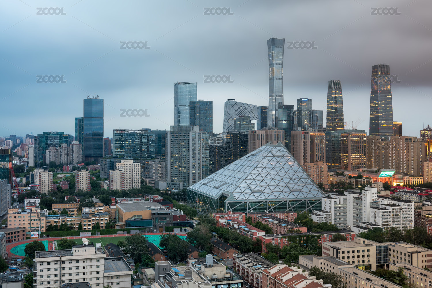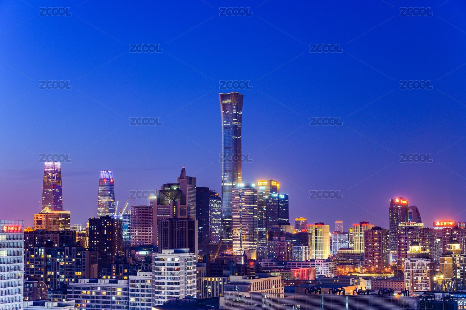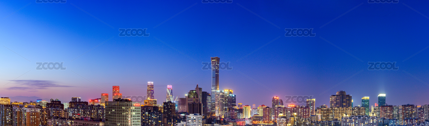 北京國(guó)貿(mào)CBD城市天際線日落夜景