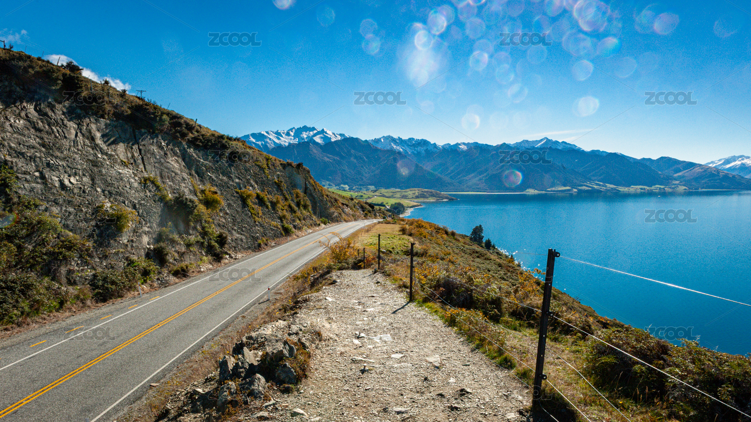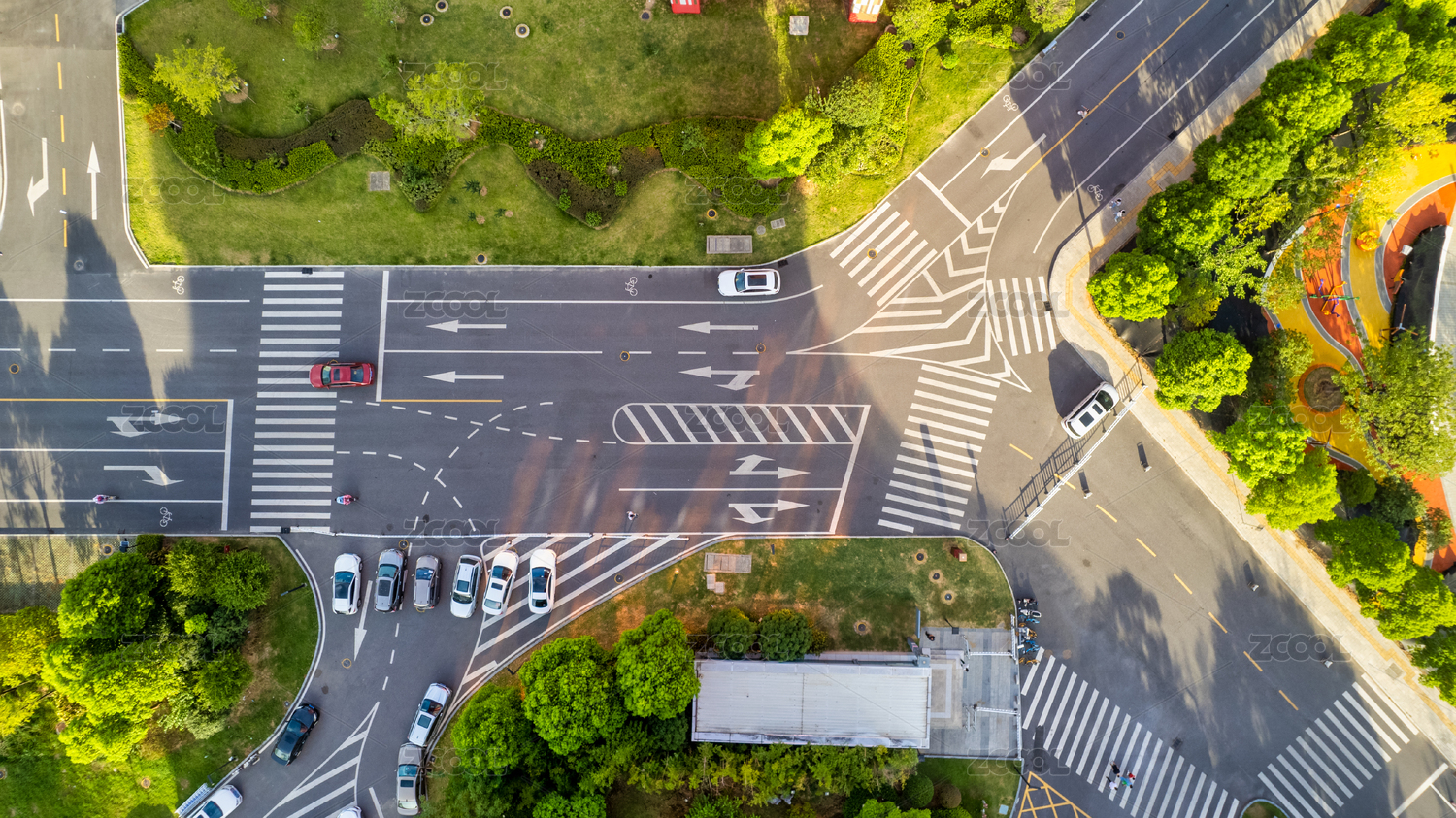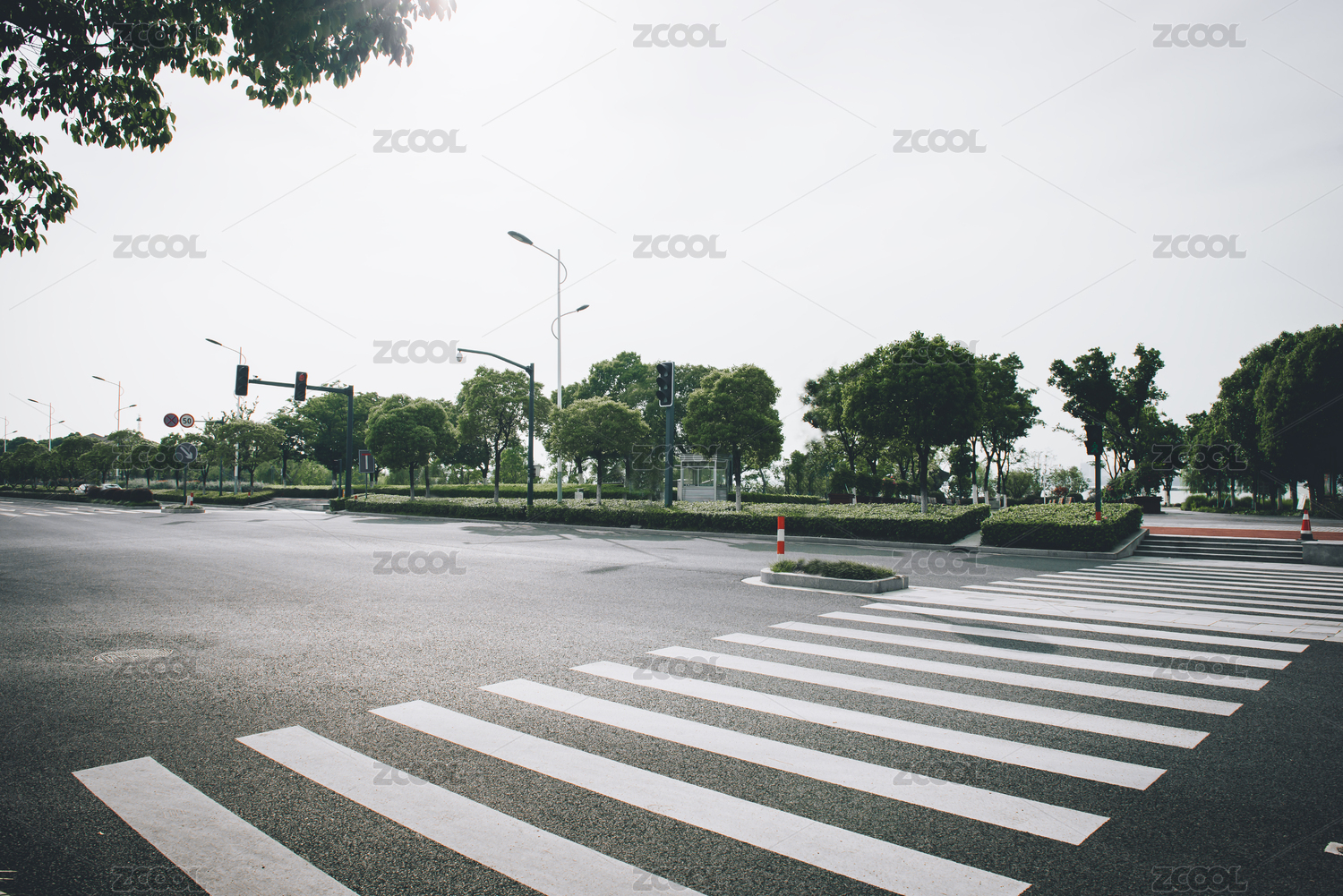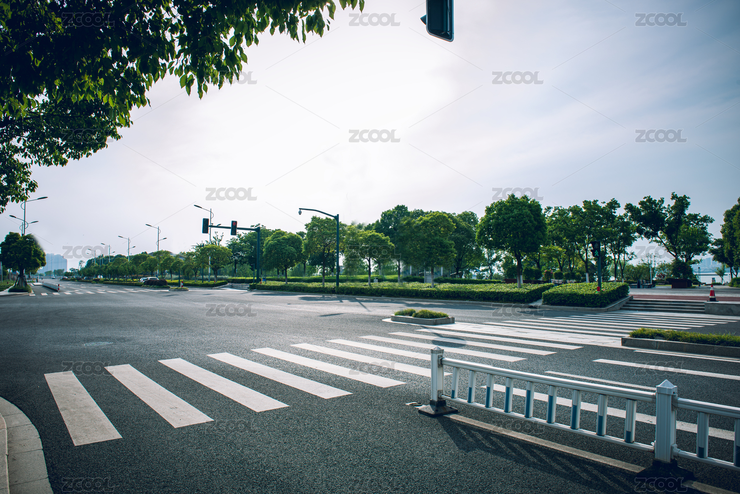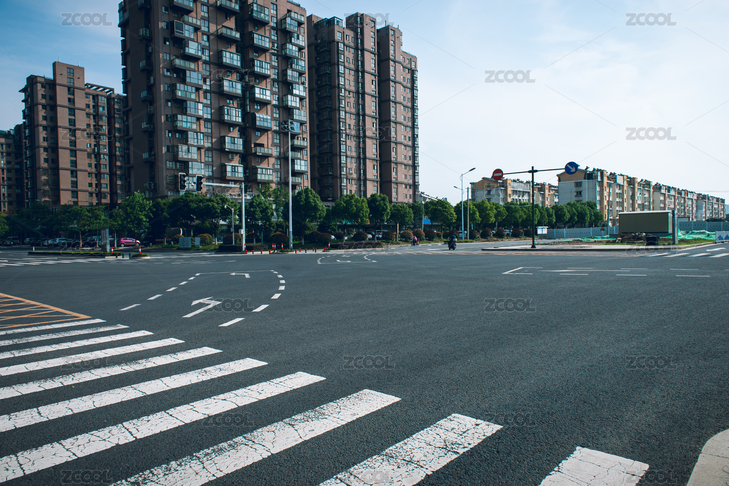 晴朗天空,城市有交通引導(dǎo)線的柏油馬路